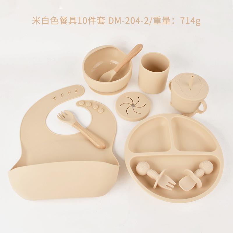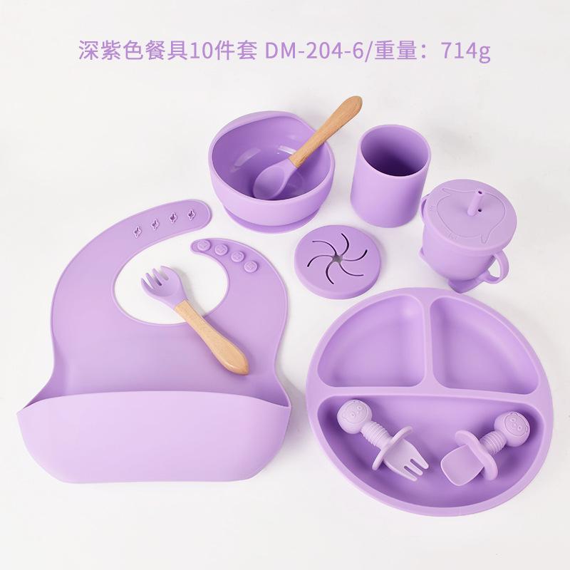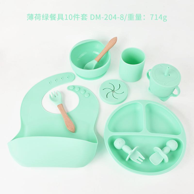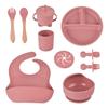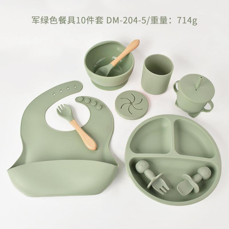 Plato de silicona para bebé de 10 piezas, vajilla de alimentación para niños, tenedor, cuchara, babero, cuenco para caracol, juego de taza de agua dos en uno