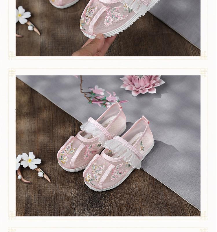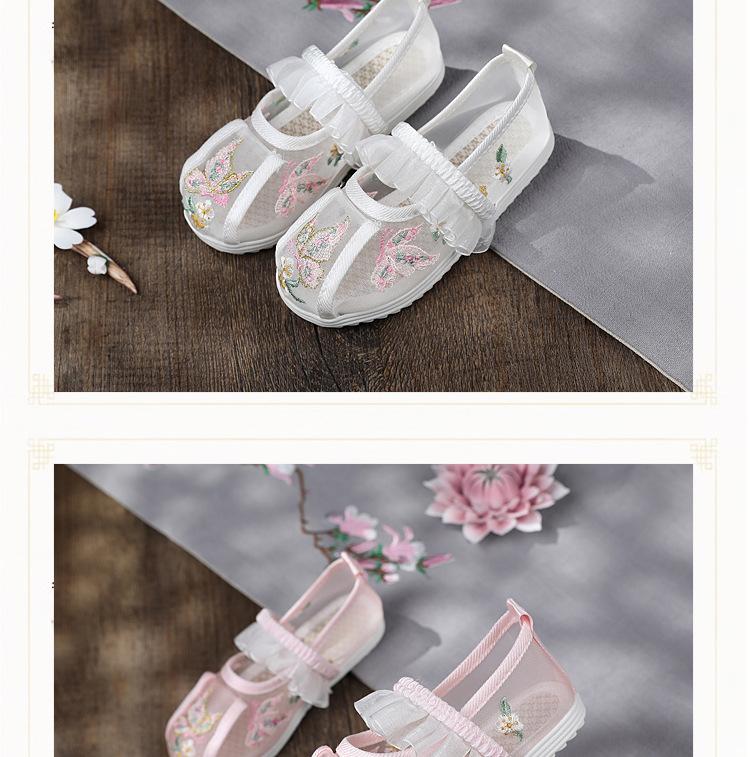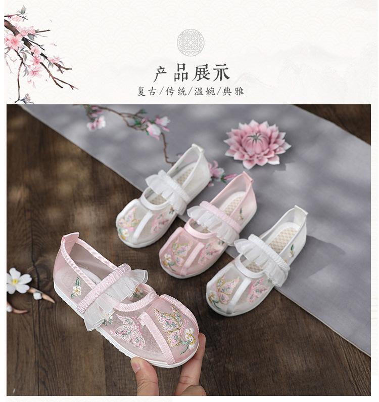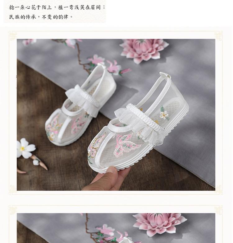 Verano Nuevo Falda Cara de Caballo Zapatos de Niño Zapatos Bordados de Niña Estilo Antiguo Zapatos de Malla Calados Bebé Estilo Chino Actuación Zapatos Dinastía Han