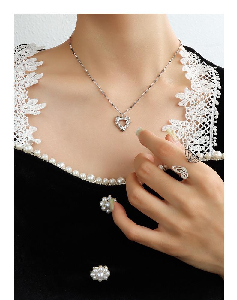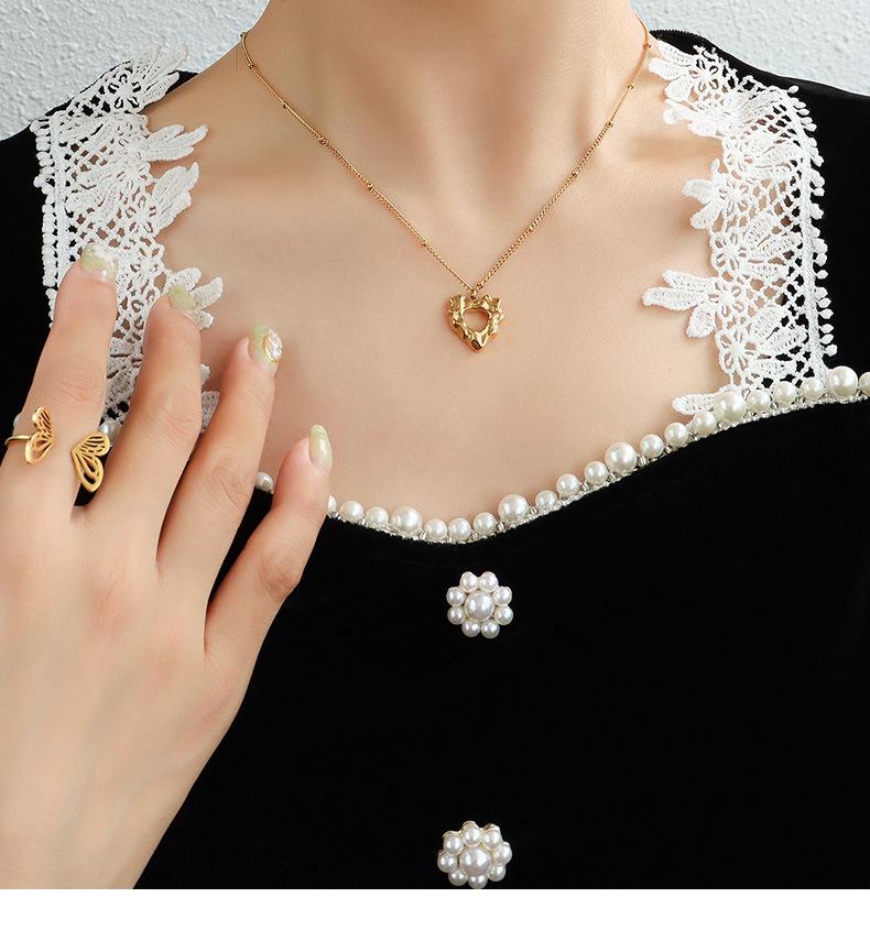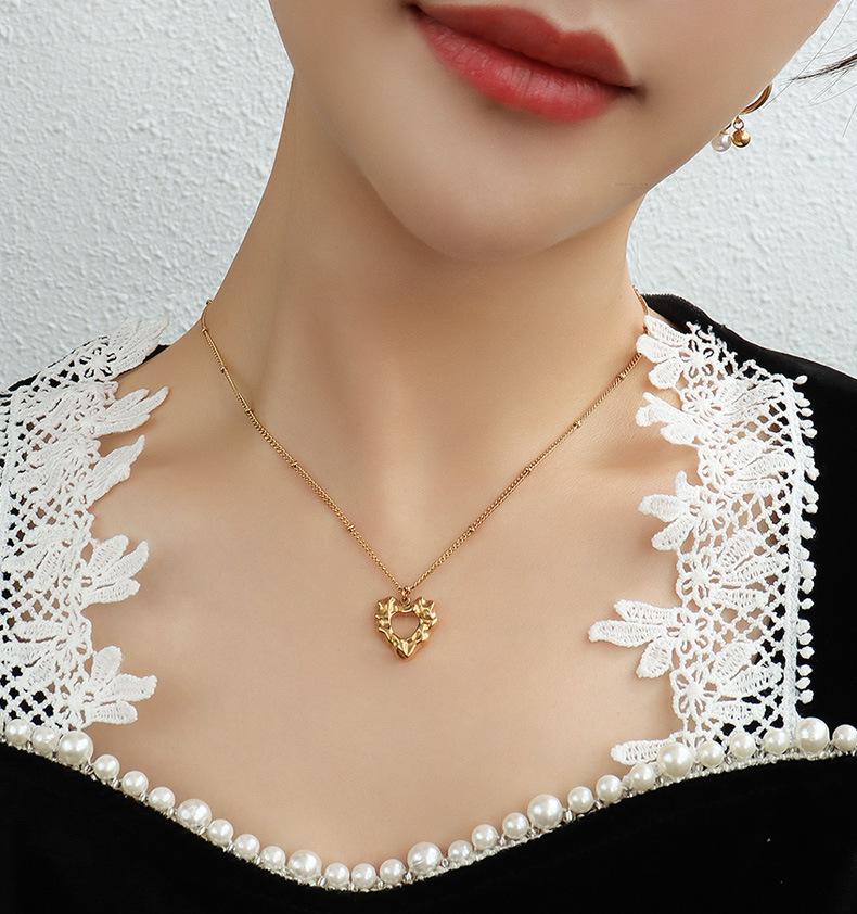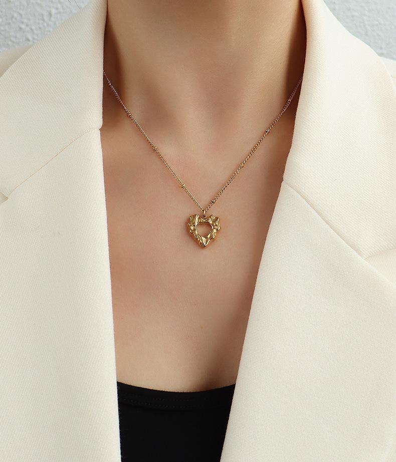 Gargantilla estilo francés Marka con colgante de corazón de melocotón y acero de titanio, cadena de clavícula de oro de 18 quilates, joyería