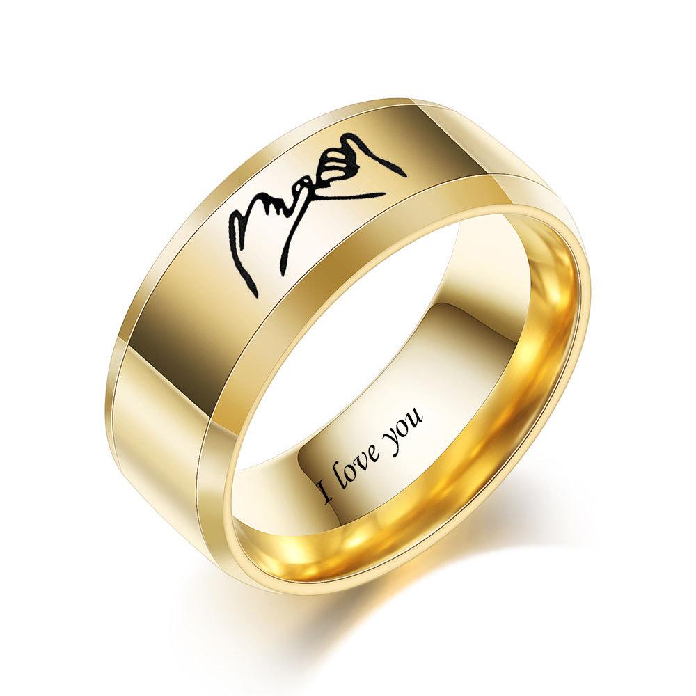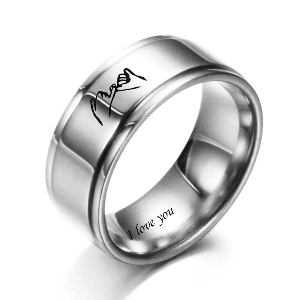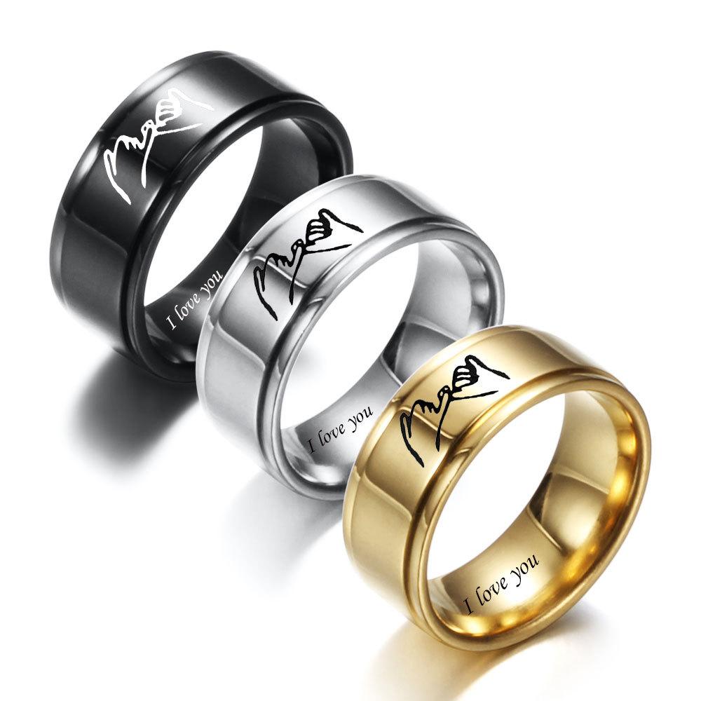 Anillo Europeo y Americano de 8mm Brillante de Corazón con Gancho Voto Te Amo Acero Inoxidable Anillo Simple para Pareja Venta al por Mayor