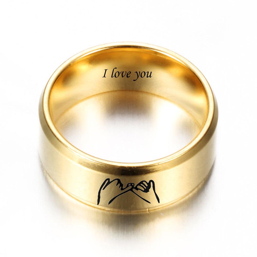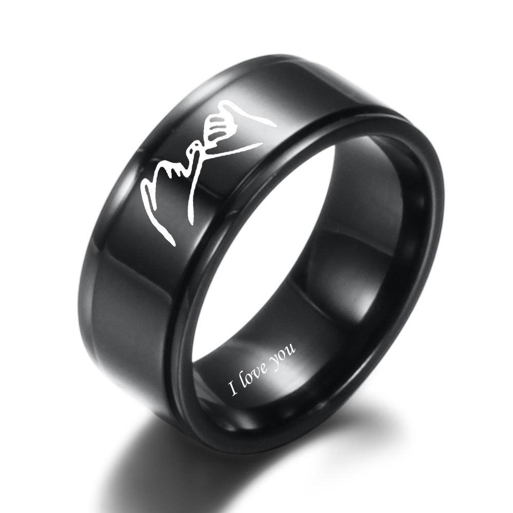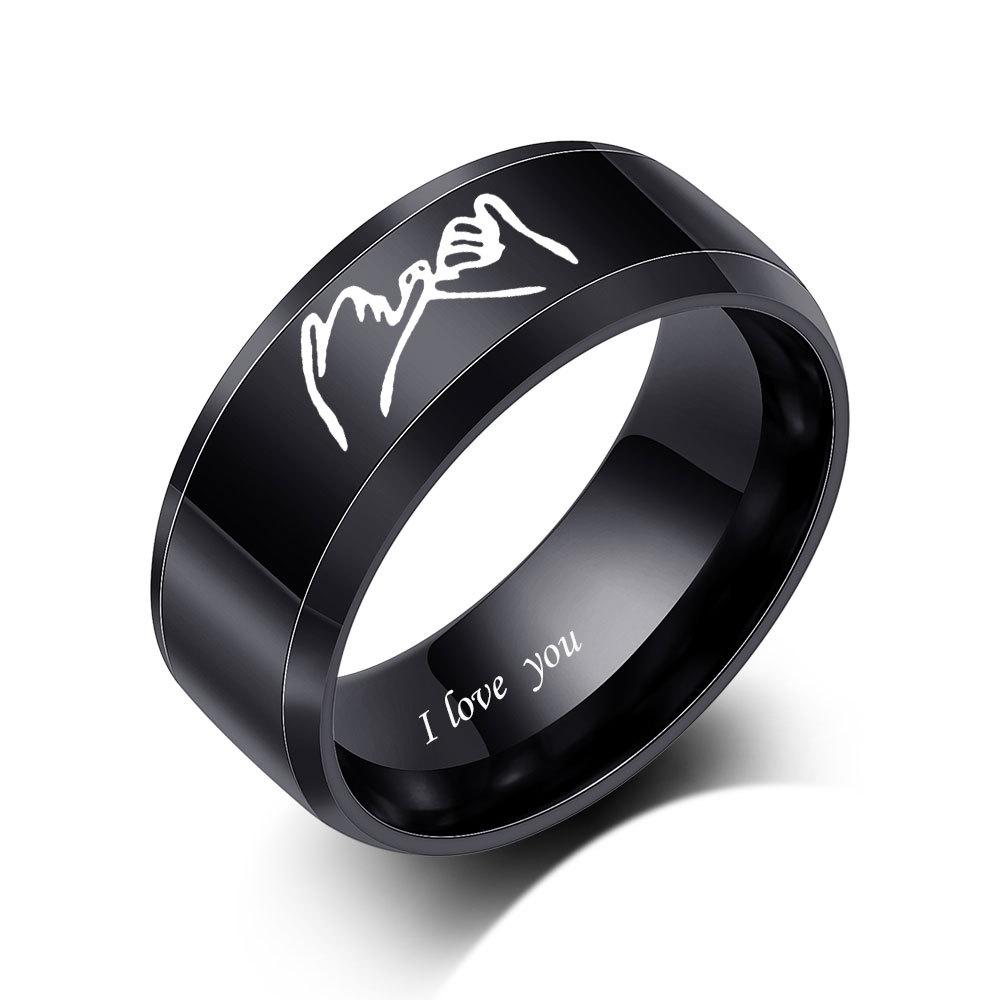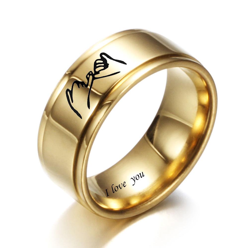 Anillo Europeo y Americano de 8mm Brillante de Corazón con Gancho Voto Te Amo Acero Inoxidable Anillo Simple para Pareja Venta al por Mayor