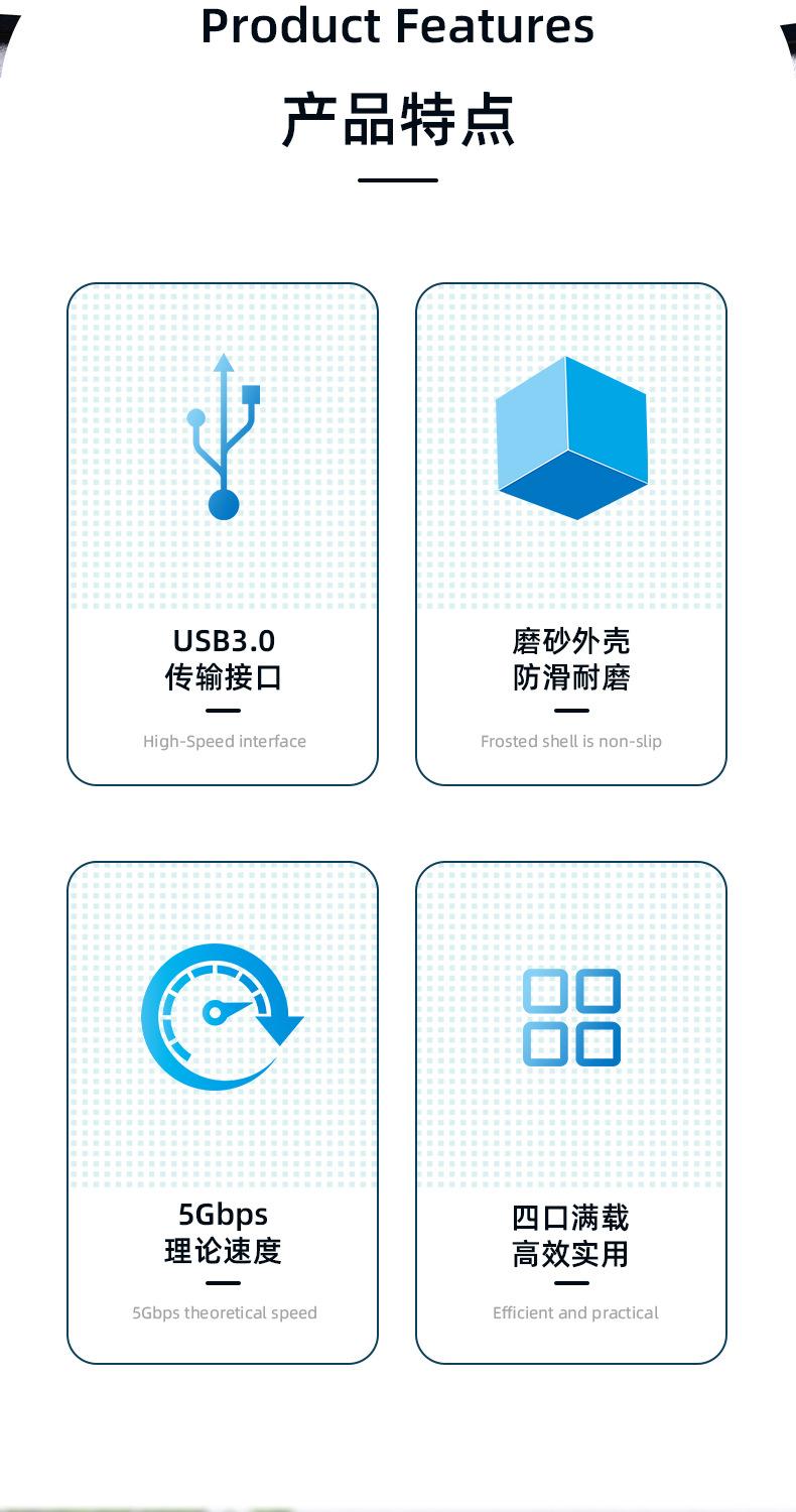 Velocidad de transmisión ultraalta USB3.0, la velocidad de transmisión puede alcanzar hasta 5 Gbps por segundo