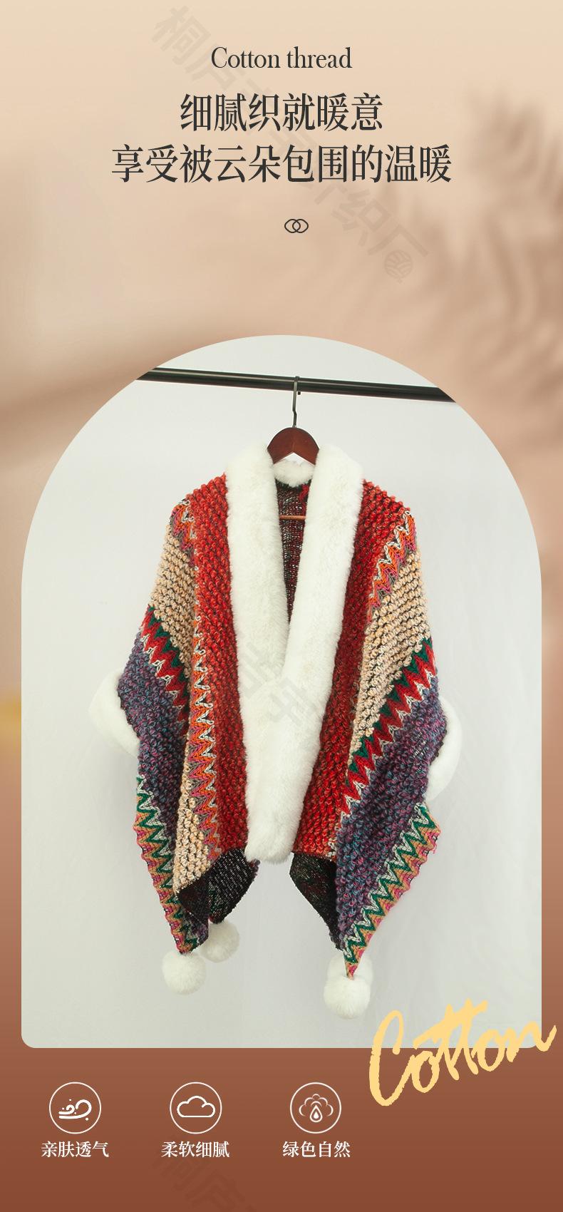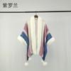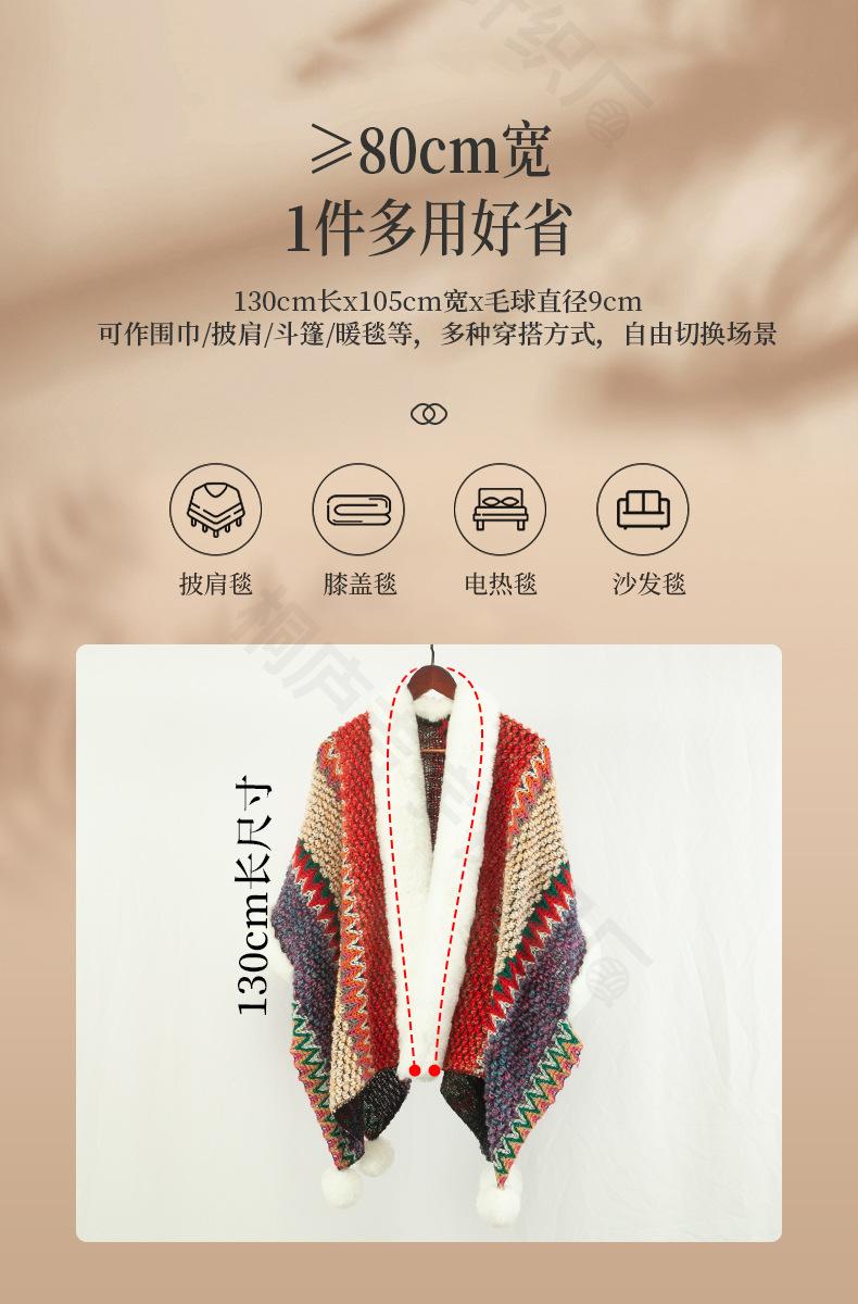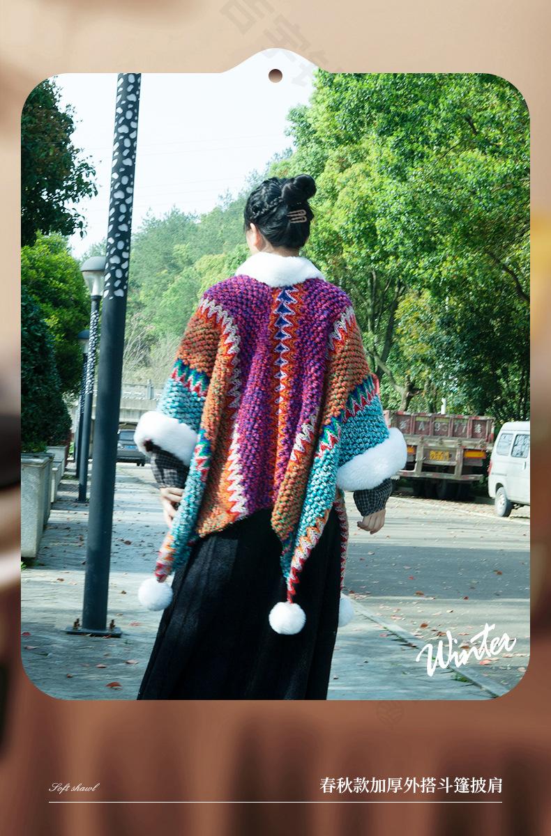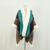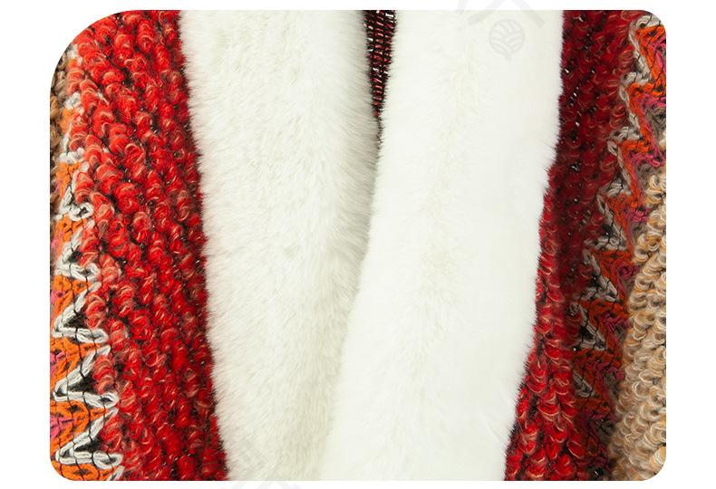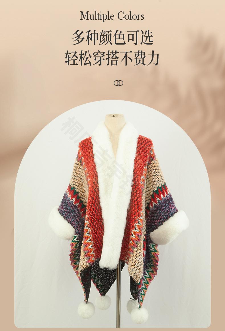 Lijiang Dali Viaje Característico Chal de Bola Colgante Imitación Piel de Conejo Rex Cuello de Piel Sobredimensionado Capa Tejida Estilo Étnico Engrosado para Mujer