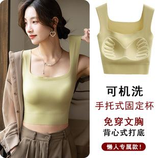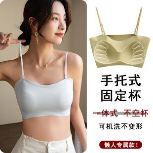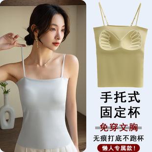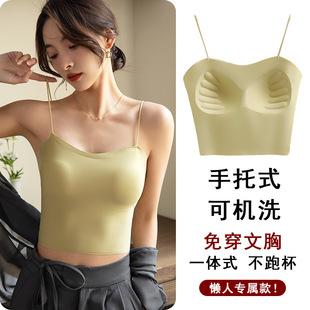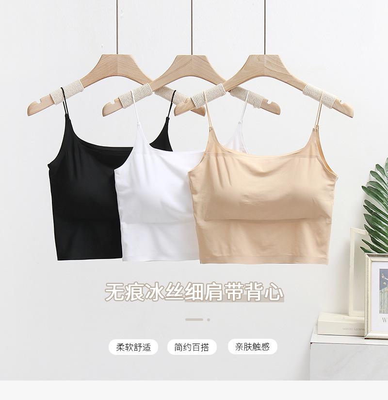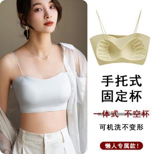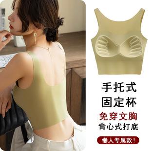 Venta directa de fábrica, sujetador de copa fija con espalda hermosa, sencillo y cómodo, tirantes finos sin tirantes, ropa interior todo en uno sin costuras para mujer, verano