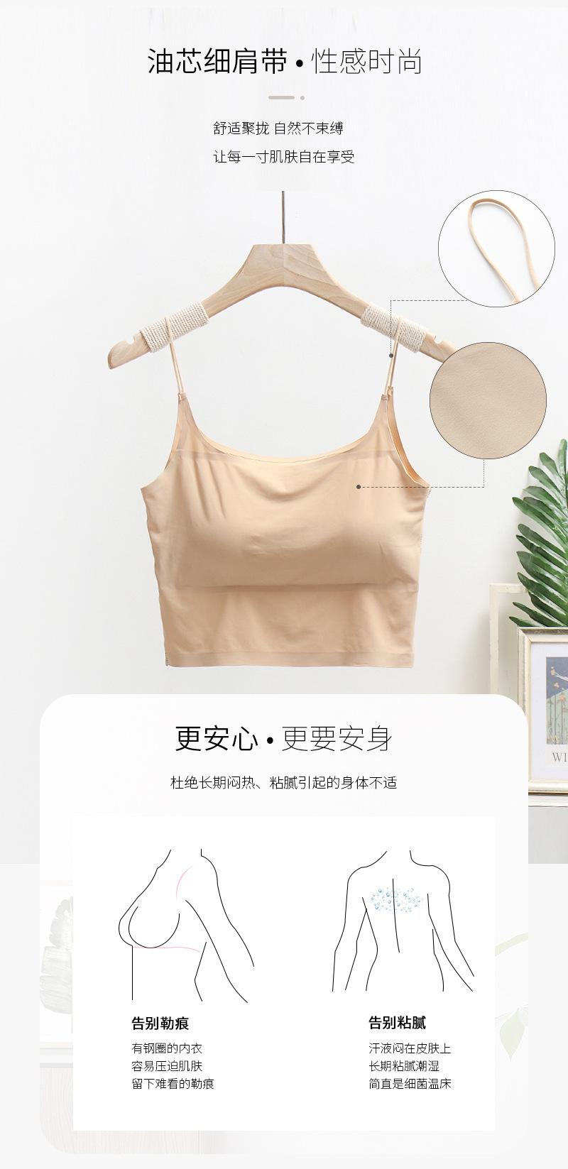 Venta directa de fábrica de chaleco de tirantes sin costuras que deja al descubierto el ombligo, copa fija de aire, de una pieza, que envuelve el pecho, ropa interior sexy de verano con espalda hermosa para mujer