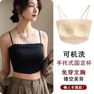 2023 Nuevo estilo de encaje con hermosa espalda fija, ropa interior de copa, todo en uno, top de tubo sin costuras, camisola sexy que deja al descubierto el ombligo para mujer, verano
