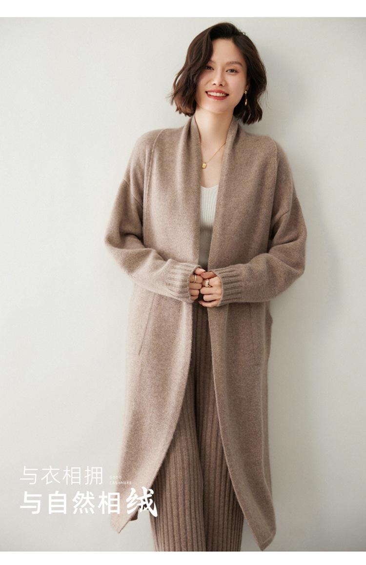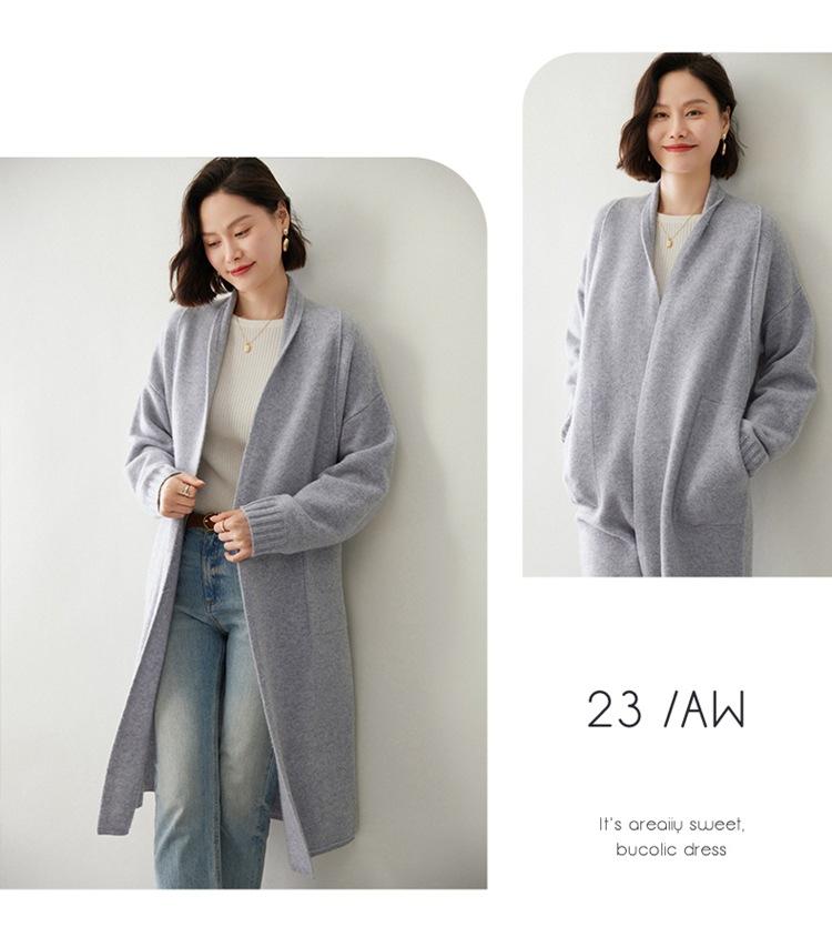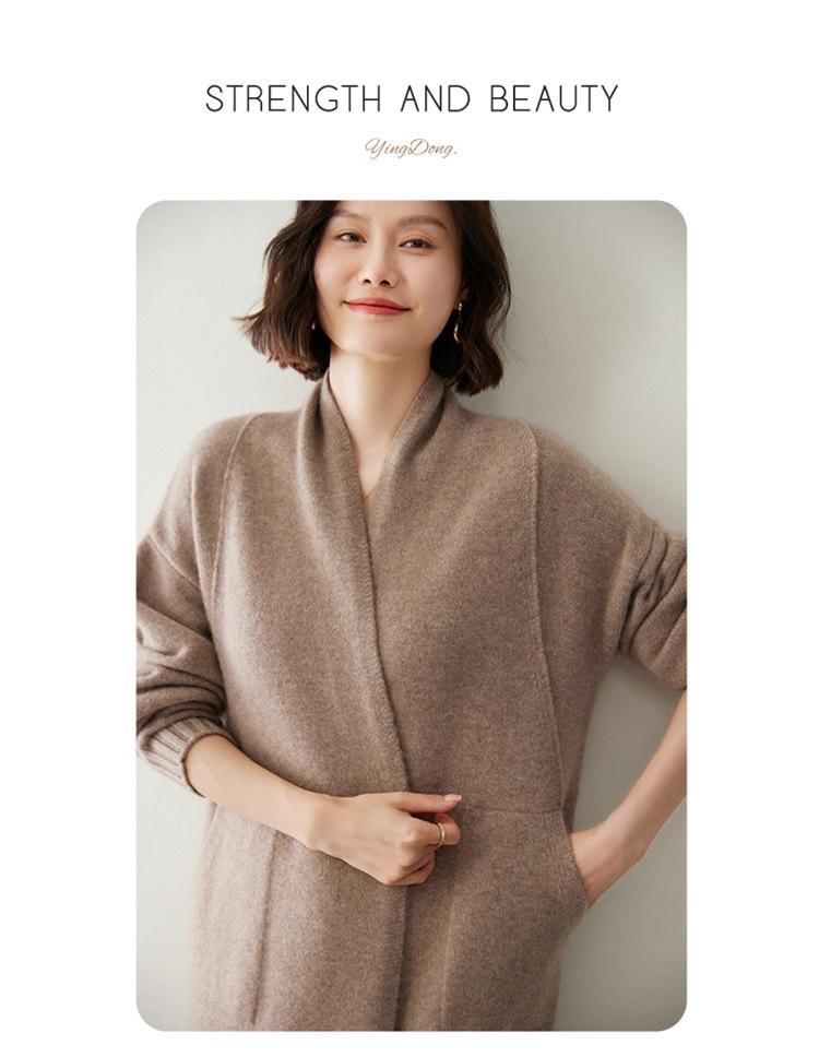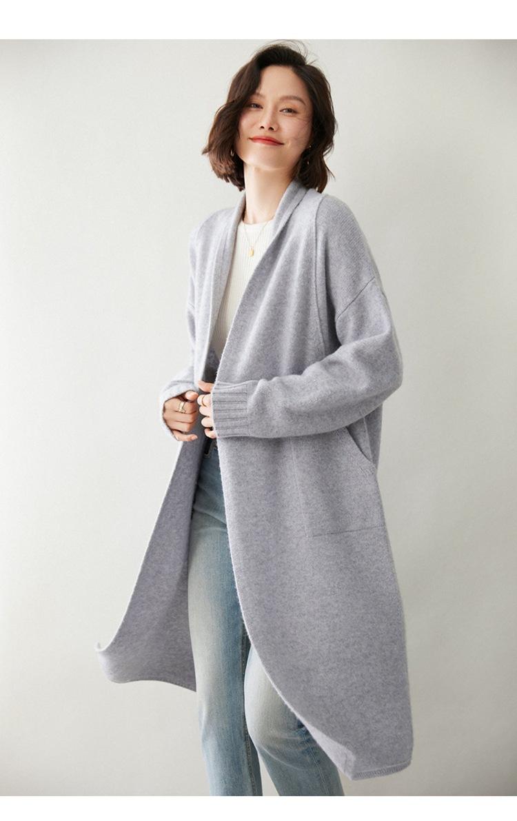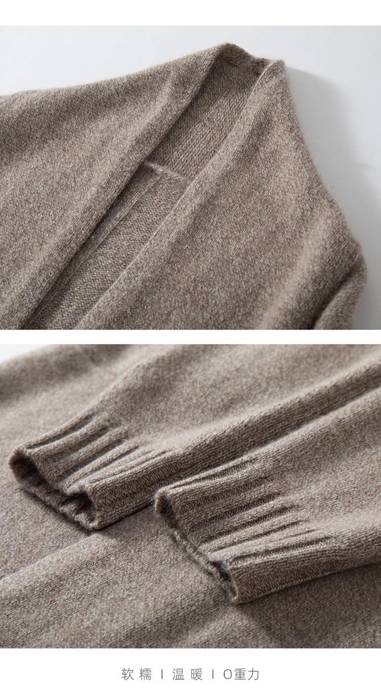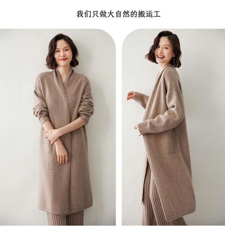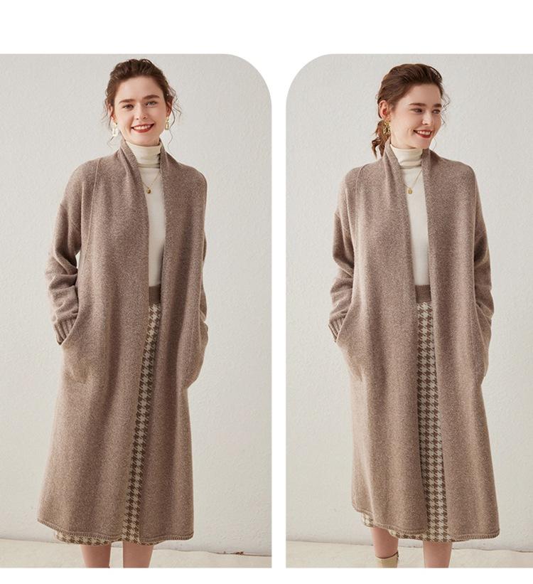Cárdigan de punto de cachemira de otoño e invierno para mujer, suéter de longitud media con cuello en V, abrigo de bolsillo holgado y adelgazante de estilo suave