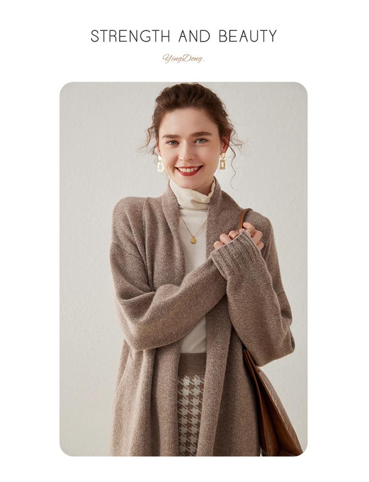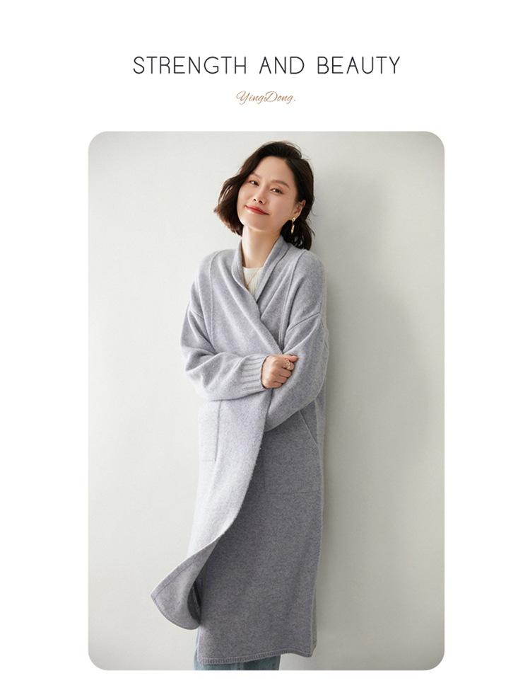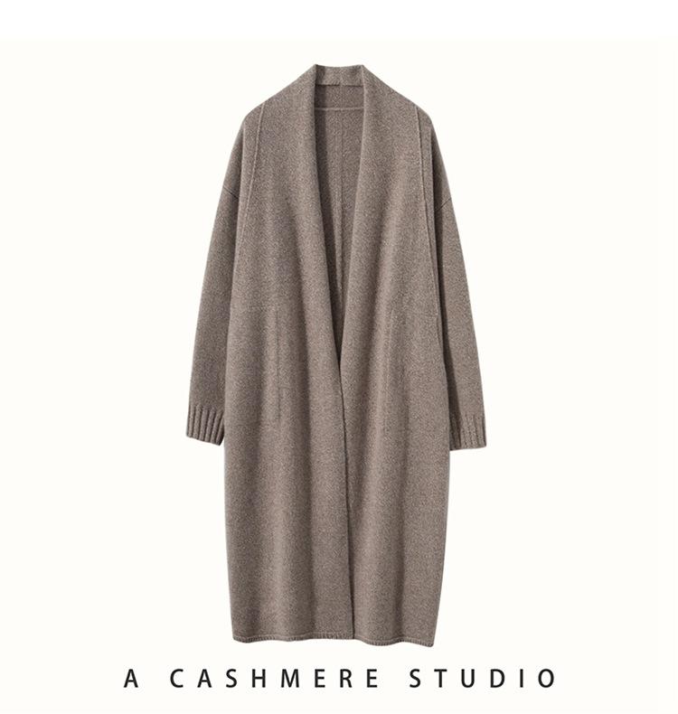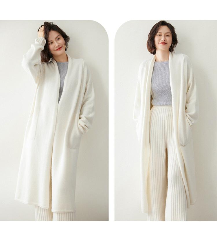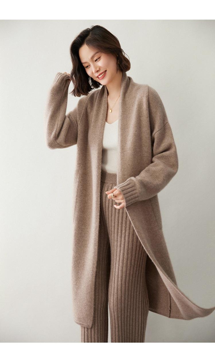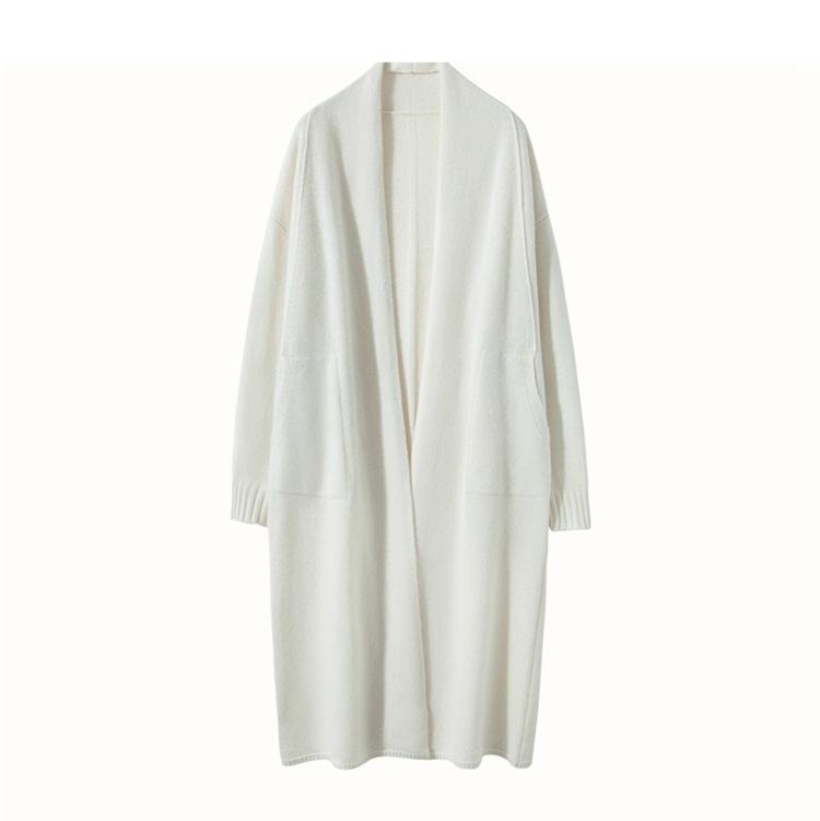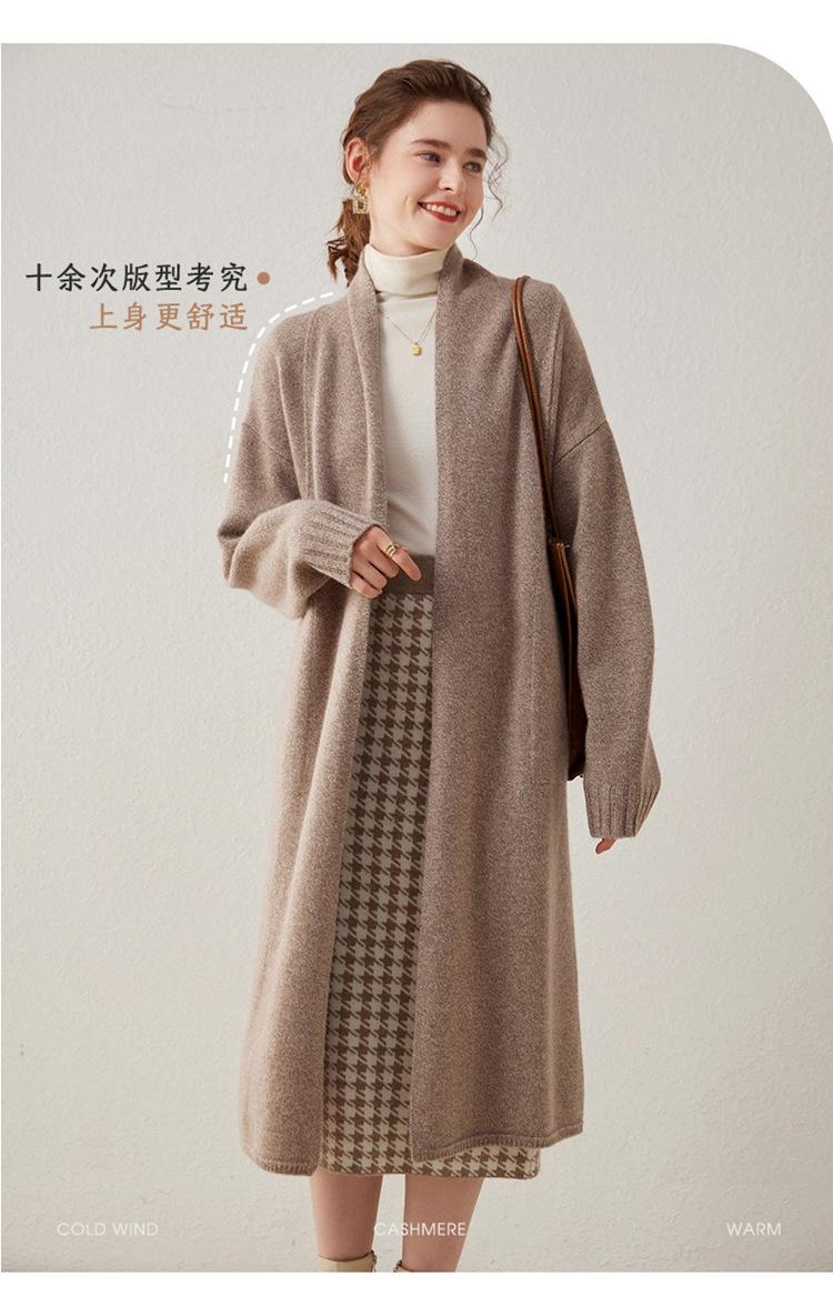 Cárdigan de punto de cachemira de otoño e invierno para mujer, suéter de longitud media con cuello en V, abrigo de bolsillo holgado y adelgazante de estilo suave