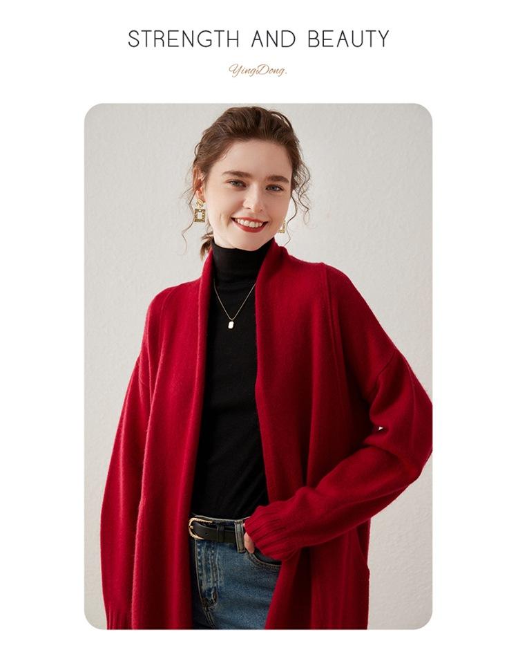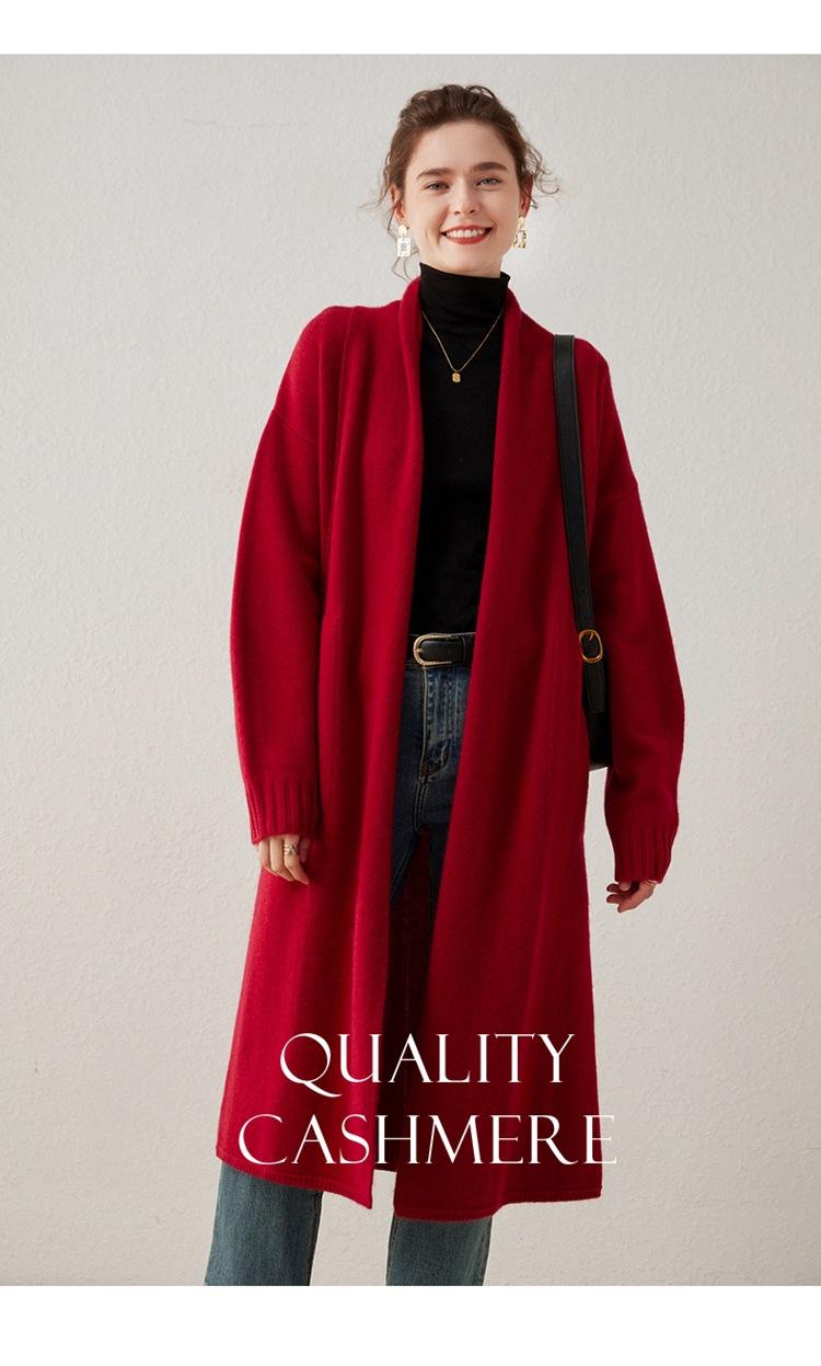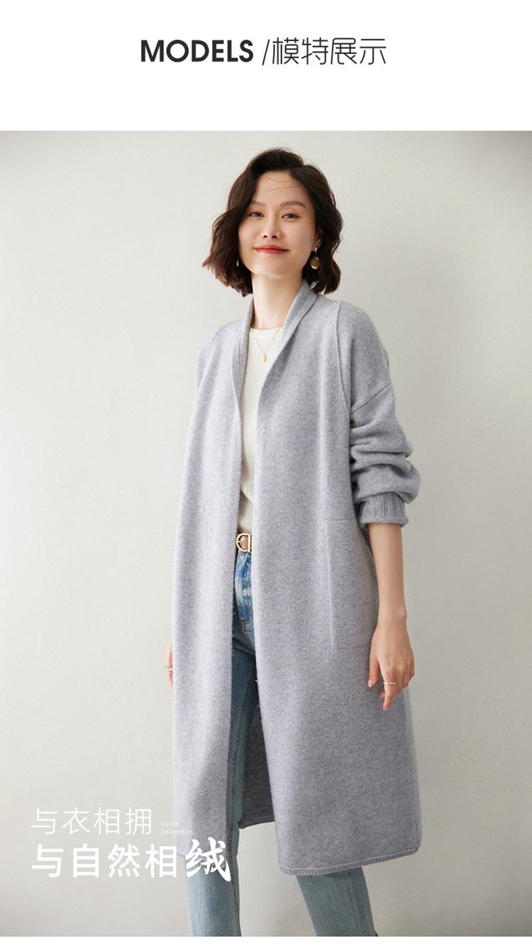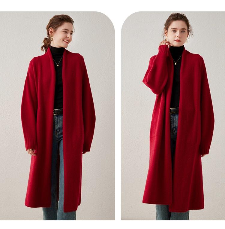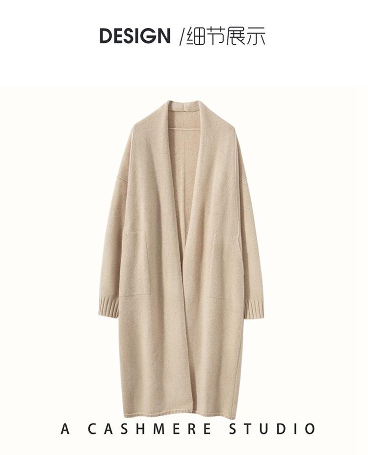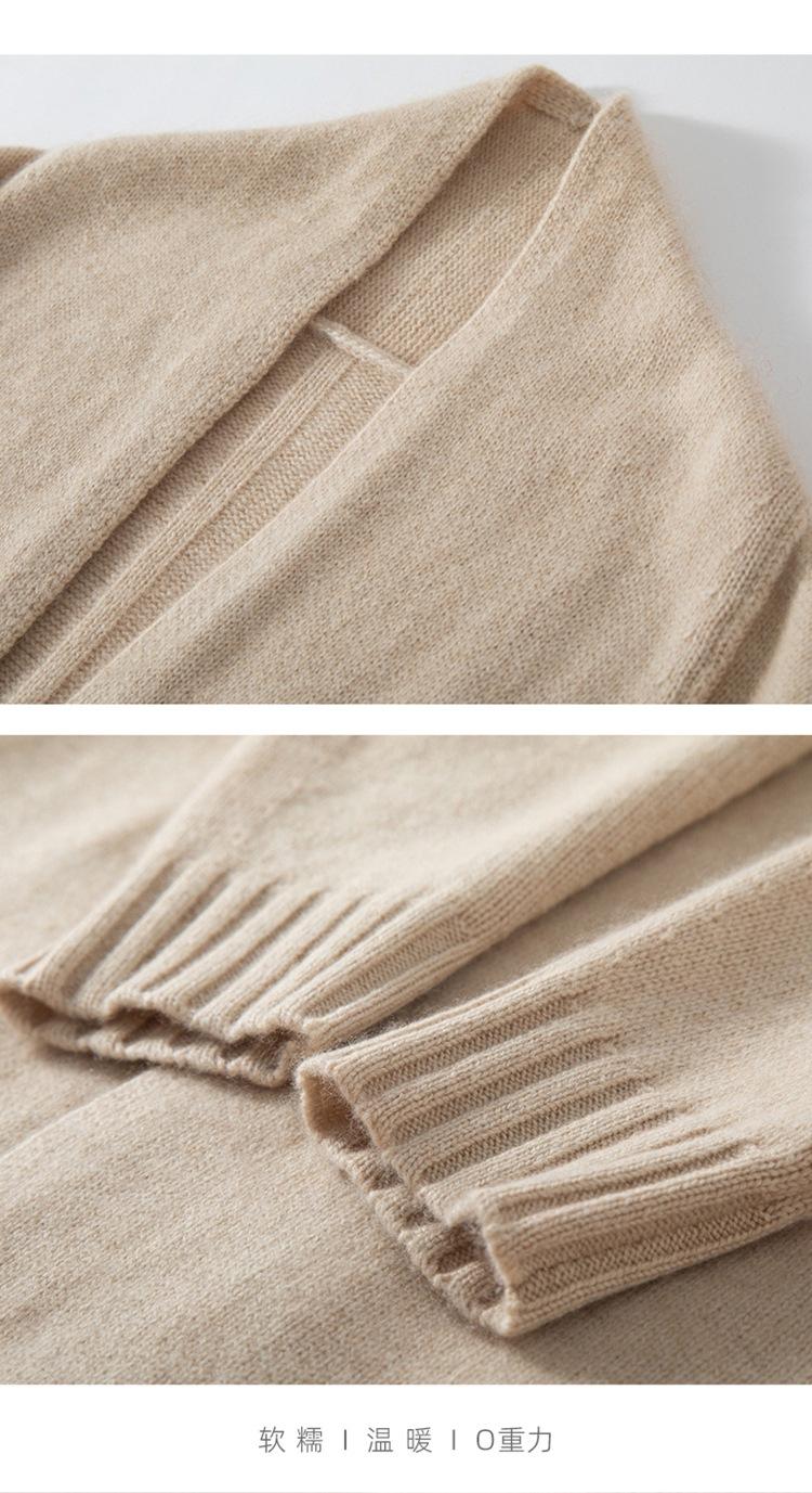 Cárdigan de punto de cachemira de otoño e invierno para mujer, suéter de longitud media con cuello en V, abrigo de bolsillo holgado y adelgazante de estilo suave
