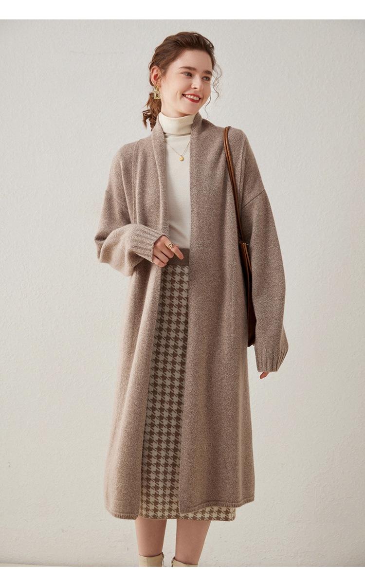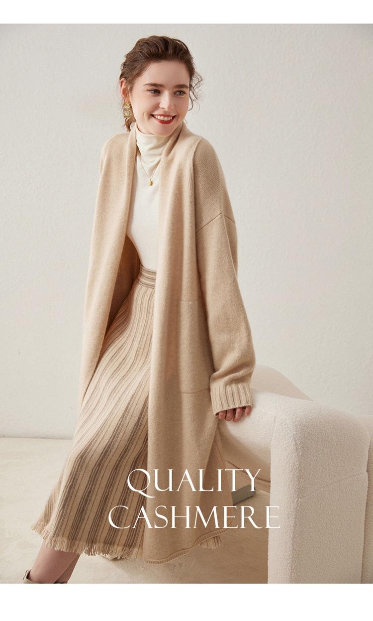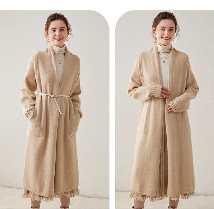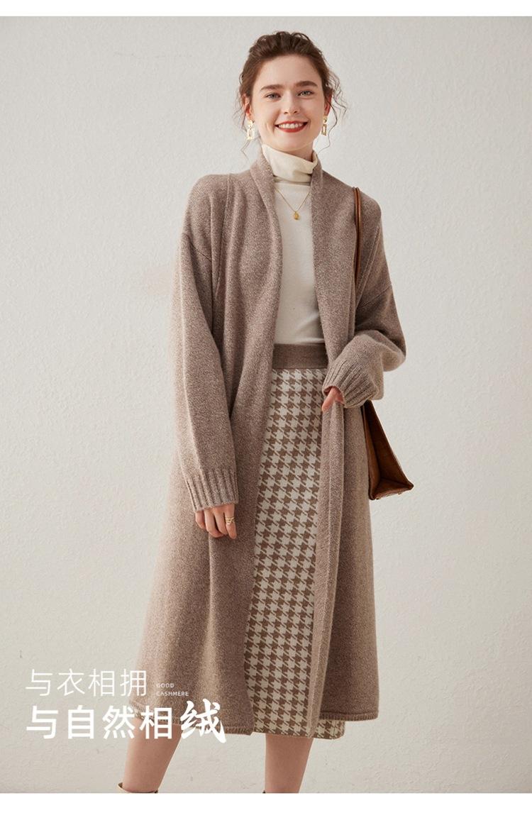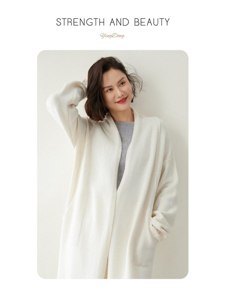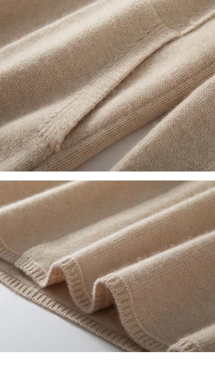 Cárdigan de punto de cachemira de otoño e invierno para mujer, suéter de longitud media con cuello en V, abrigo de bolsillo holgado y adelgazante de estilo suave