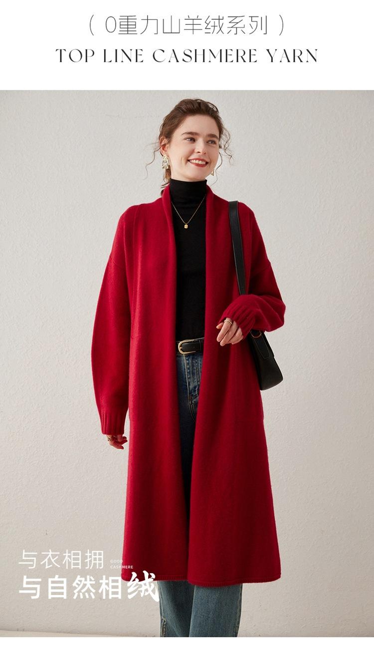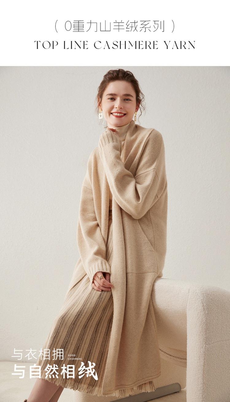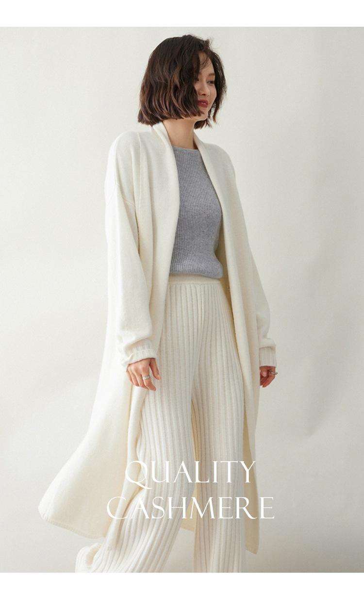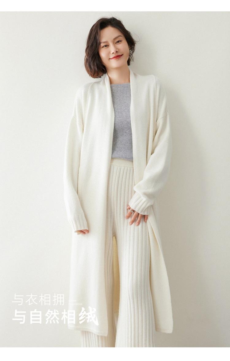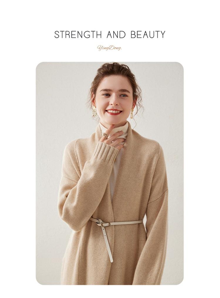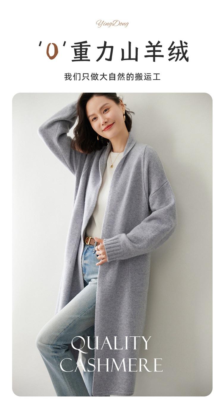 Cárdigan de punto de cachemira de otoño e invierno para mujer, suéter de longitud media con cuello en V, abrigo de bolsillo holgado y adelgazante de estilo suave