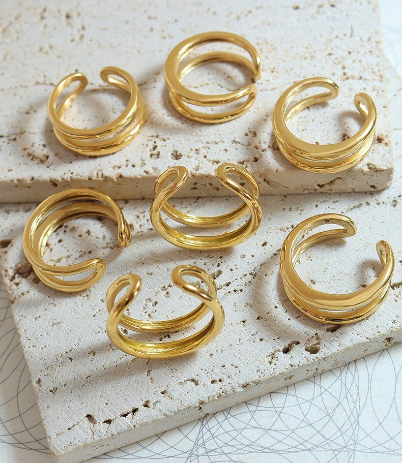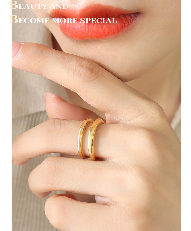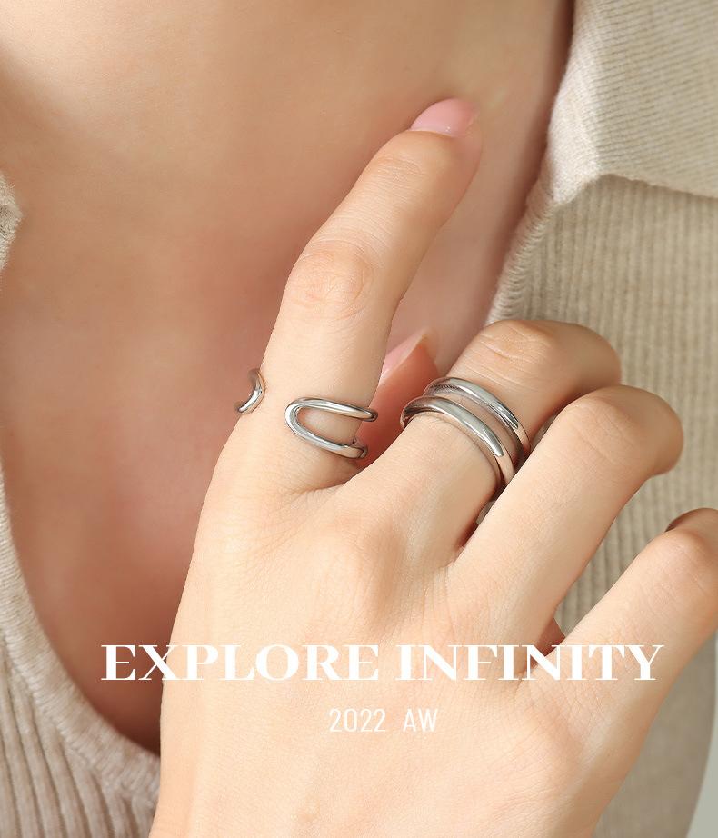 Anillo geométrico de pareja, simple, de acero de titanio, nuevo, con apertura de doble capa y varios tamaños opcionales.