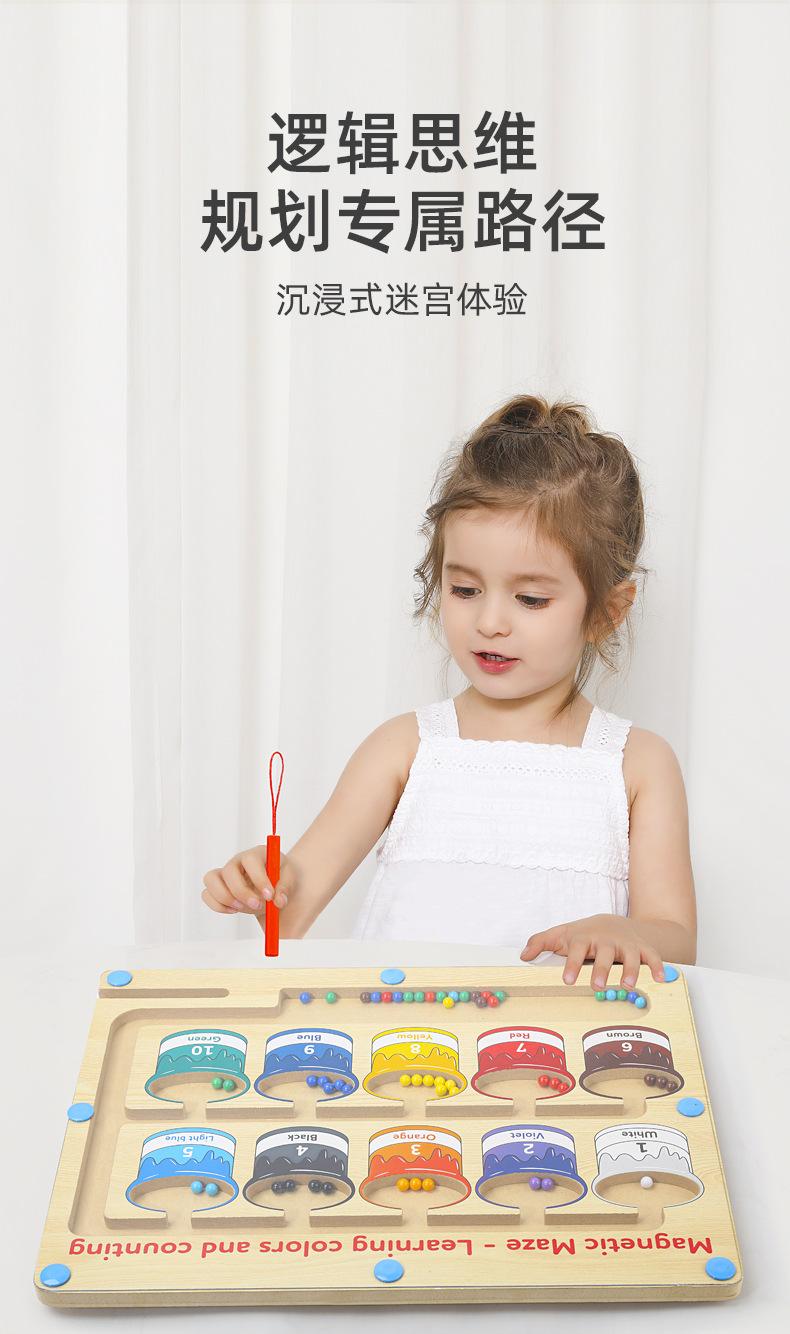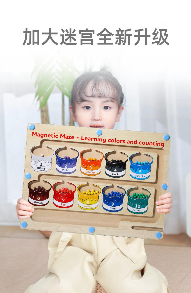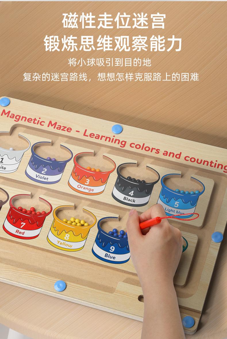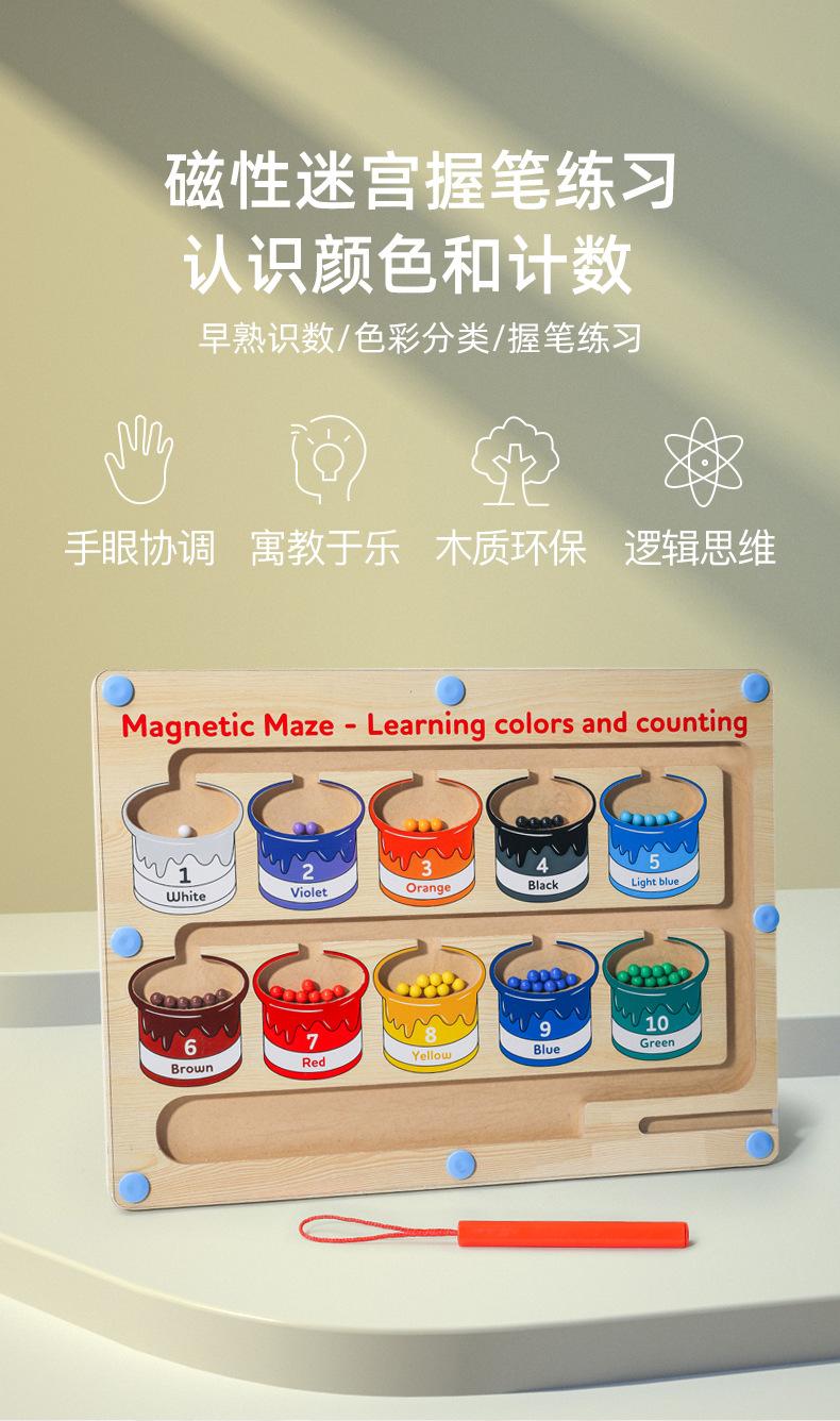 Juguetes de madera, clasificación de colores, laberinto magnético, bolígrafo de madera para niños, cuentas, pensamiento lógico, entrenamiento, rompecabezas, educación temprana
