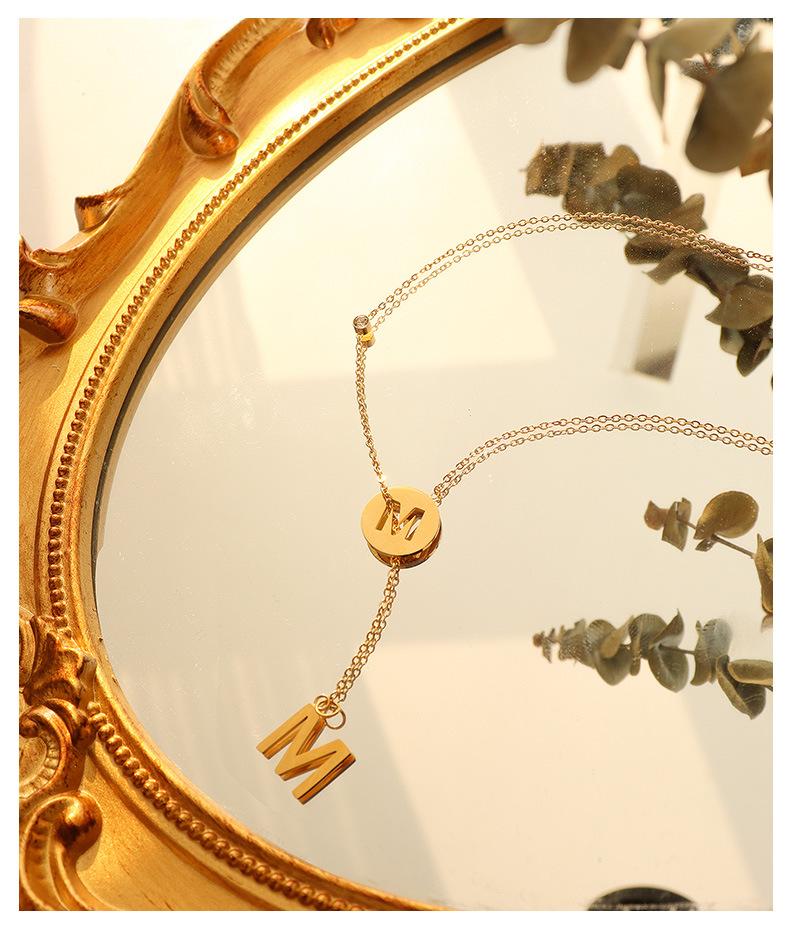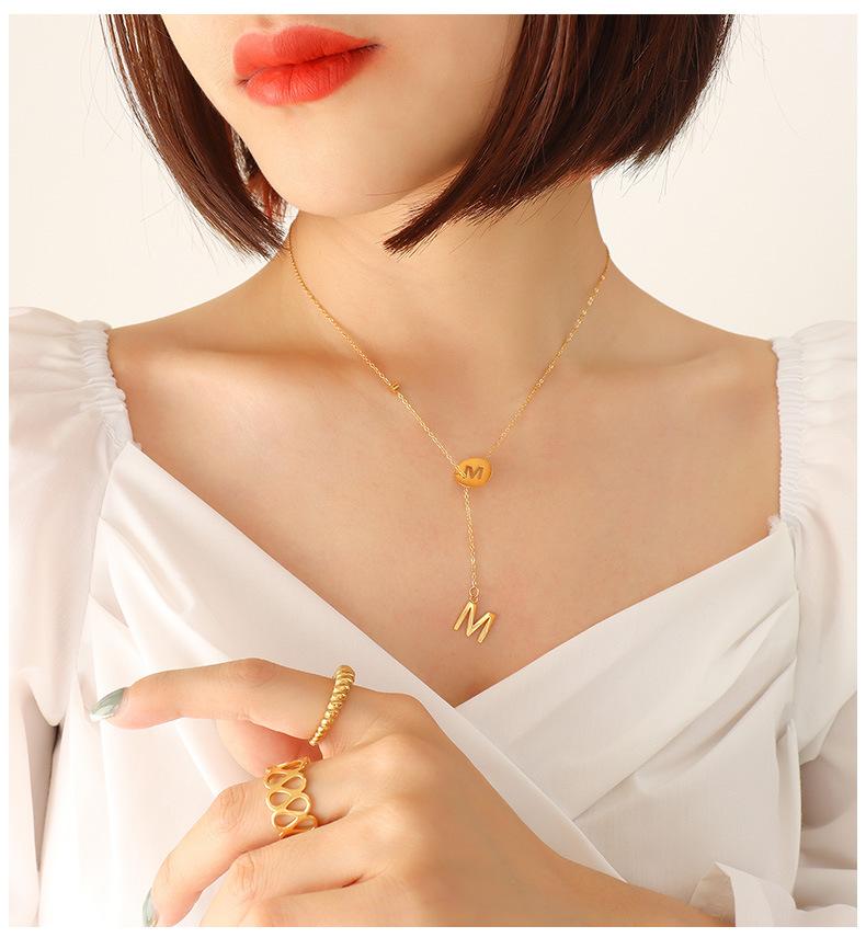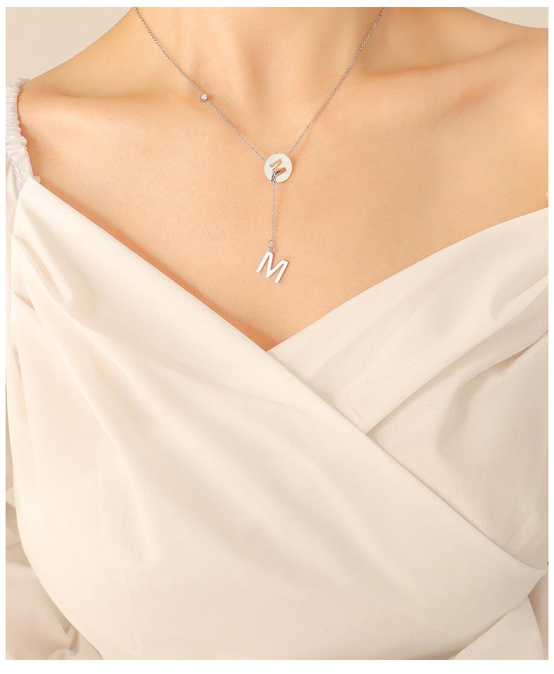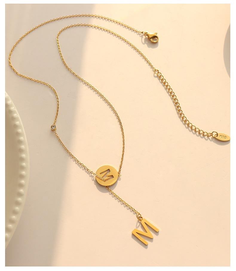 P551-steel color letter M necklace -42 5cm, P551-gold letter M necklace -42 5cm, P551-rose letter M necklace -...