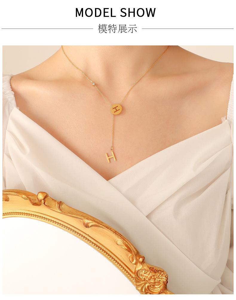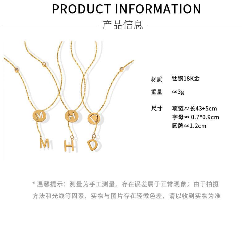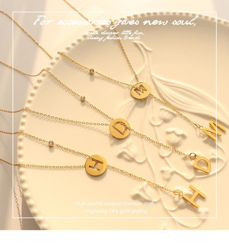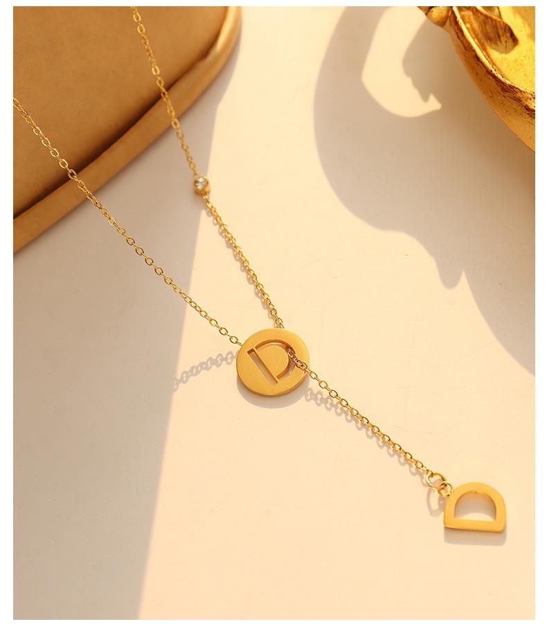 Collar con colgante de estilo simple con letra D en inglés, estilo europeo y americano, cadena de clavícula, joyería para mujer, chapado en acero de titanio de 18 quilates, resistente a la decoloración
