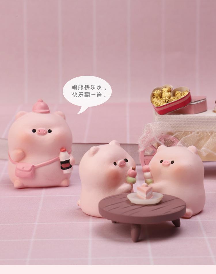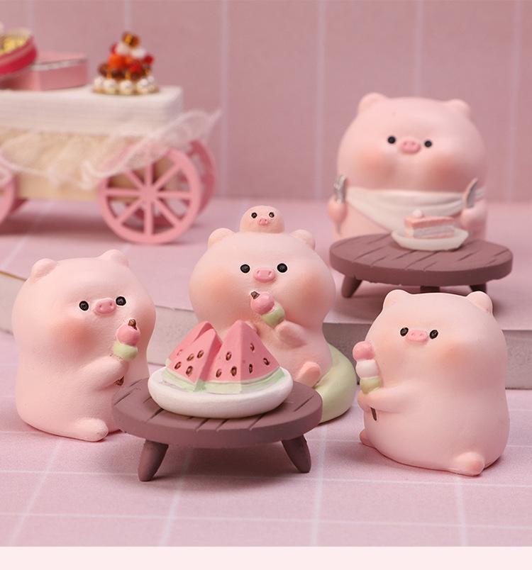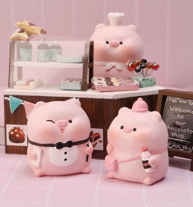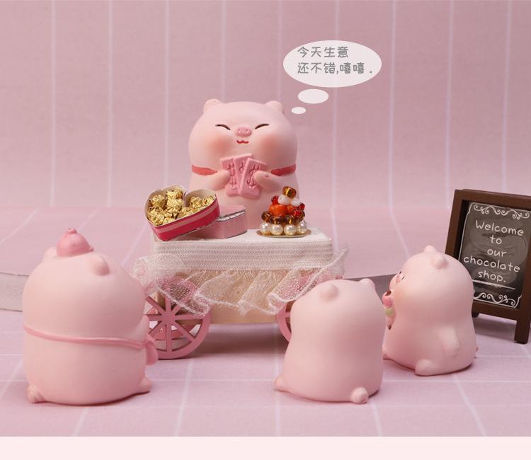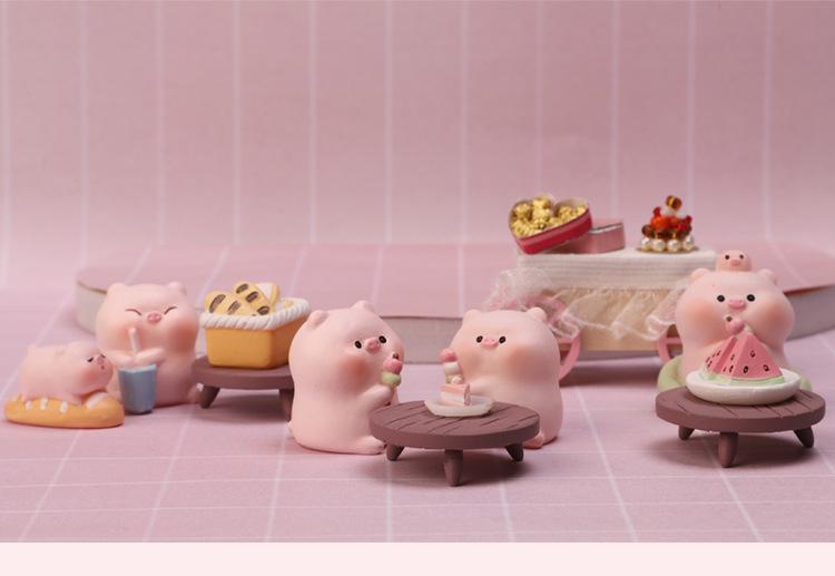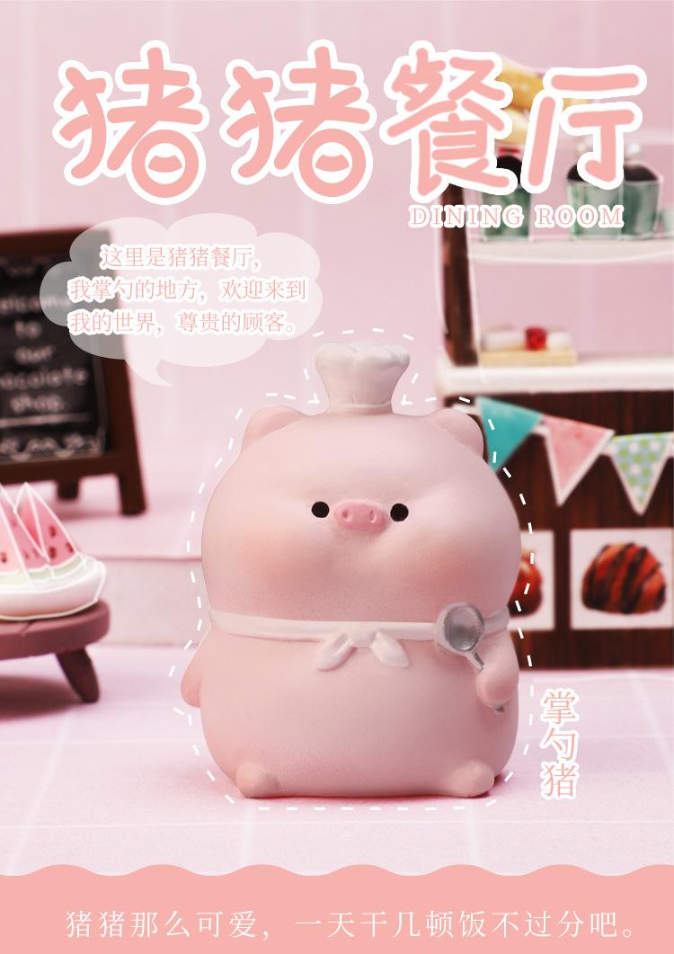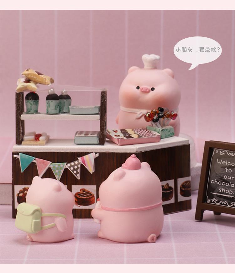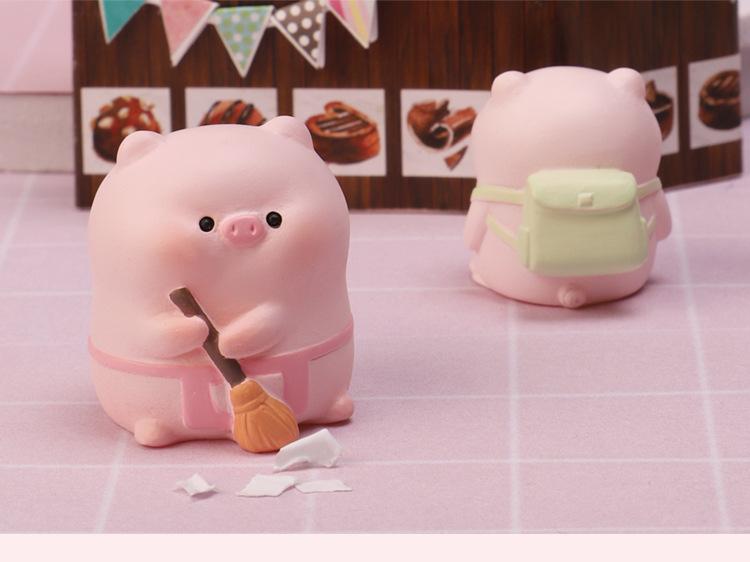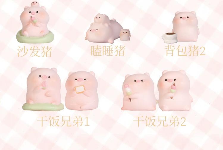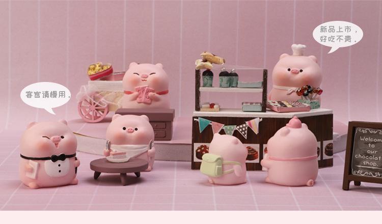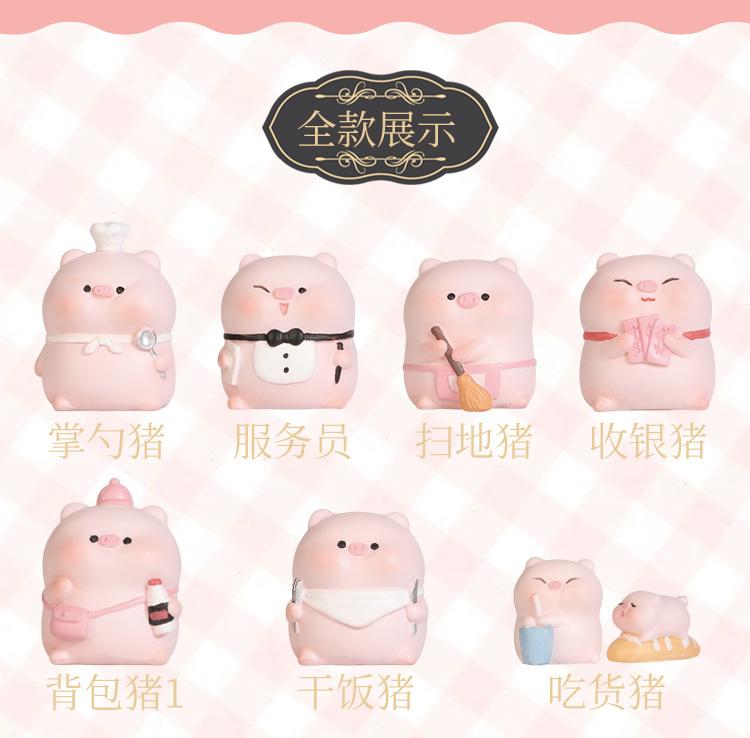 Figura Caja Ciega Restaurante Cerdo de Dibujos Animados Adorno de Escritorio Artesanía de Resina Creativo Cerdo Arroz Seco Regalo de Cumpleaños Divertido