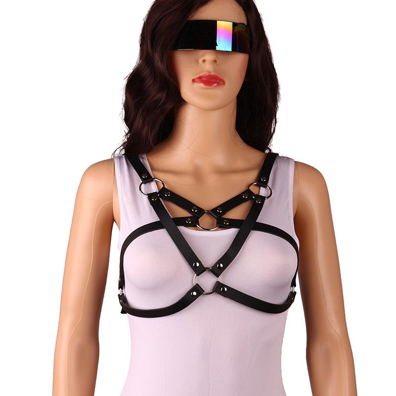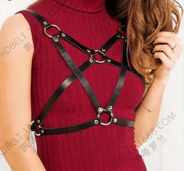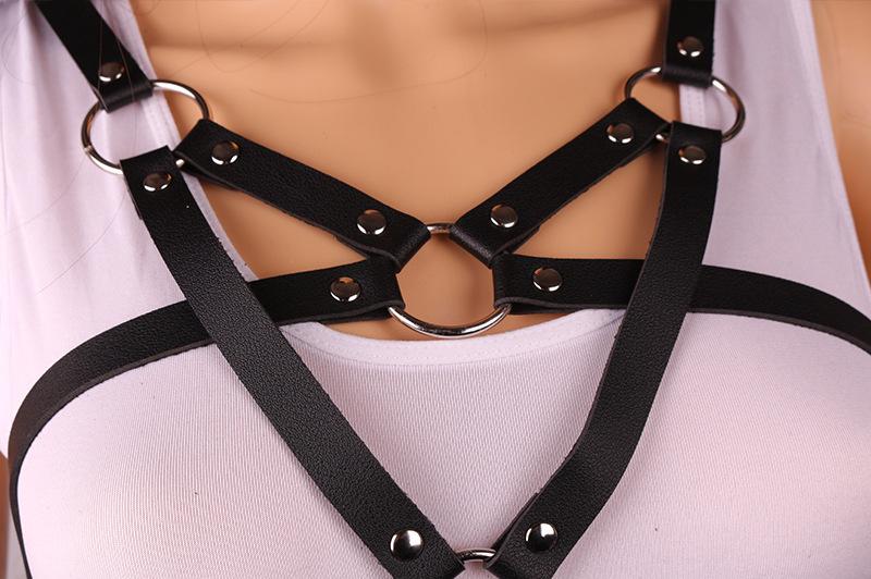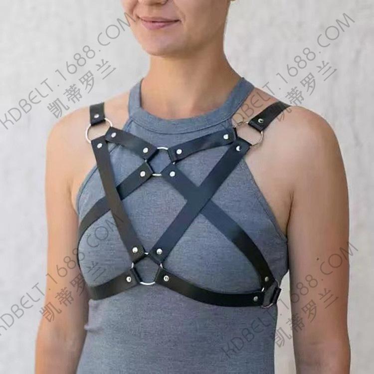 Europeo y Americano Sexo Cuero Cinturón Sujetador Grillete Ropa de Cuero para Mujer Ropa Interior de Imitación de Cuero Túnica Sujetador Corsé de Cuero Ajustado