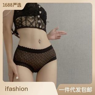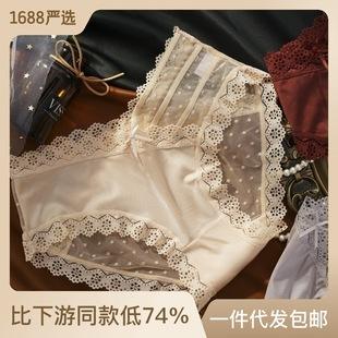 Nayipai ropa interior sexy de encaje de cintura media para mujer, tejido jacquard suave, ropa interior de algodón transpirable para mujer