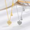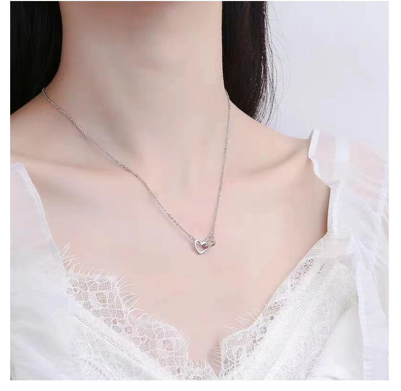 Collar con botón de amor de plata esterlina S925 con incrustaciones de diamantes, estilo coreano, clásico, elegante, con forma de corazón, combinable con todo, joyería de plata.