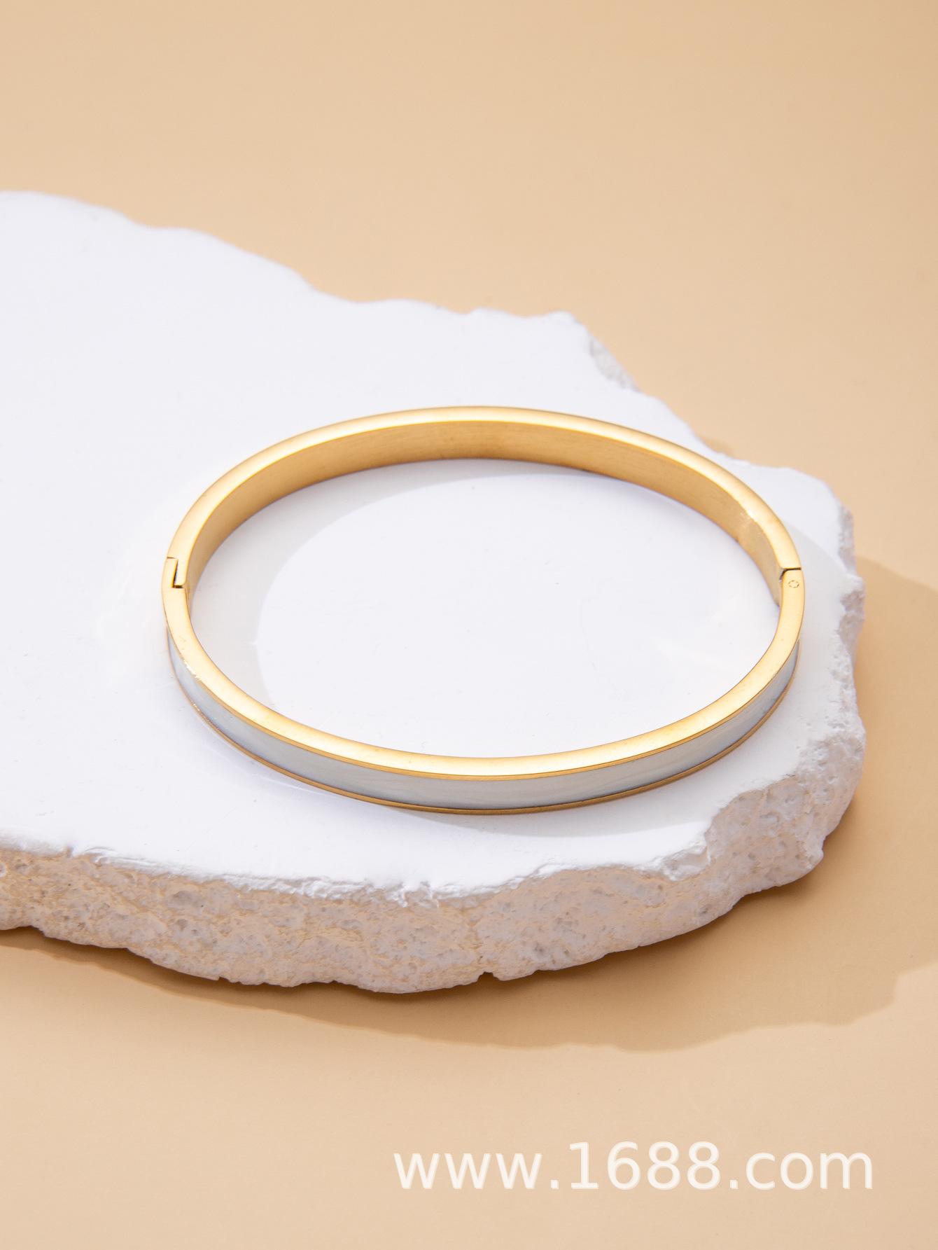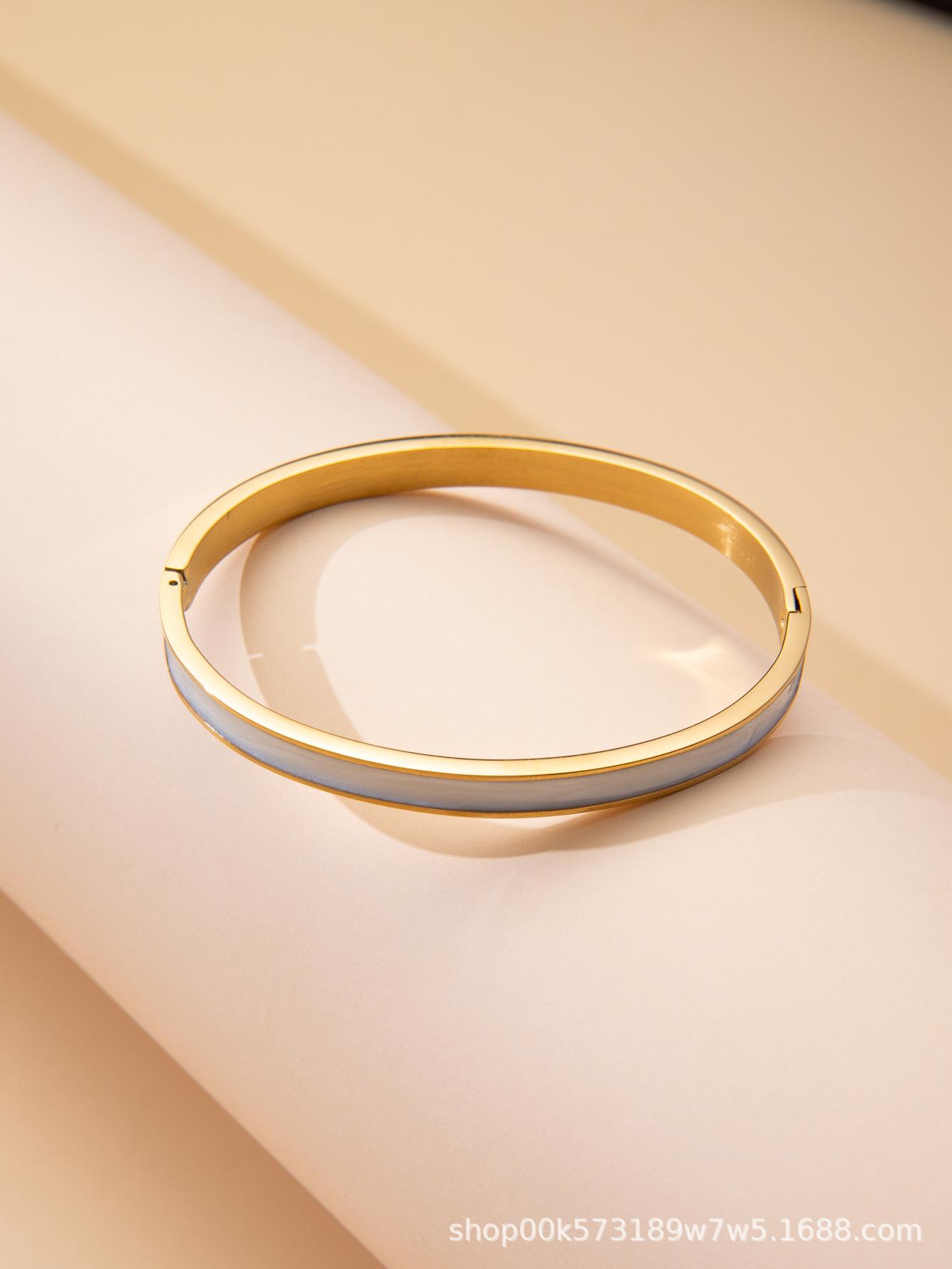 Pulsera de Acero de Titanio para Niña con Sentido Avanzado Pulsera de Aceite Goteado Moda Transfronteriza Europea y Americana Pulsera de Círculo Pequeño de Fragancia