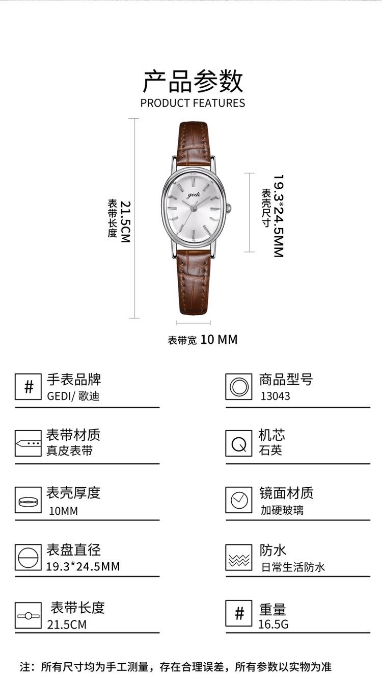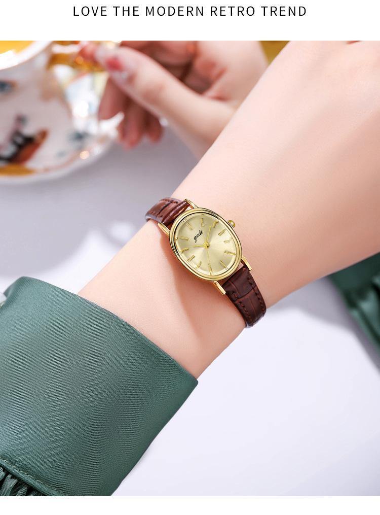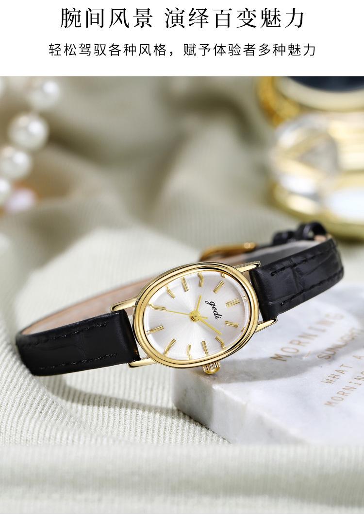 Reloj Goldie Ins de alta gama para mujer, sencillo, de nicho, ovalado, de cuero, de cuarzo, resistente al agua.