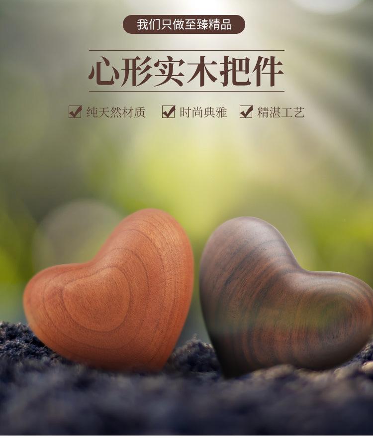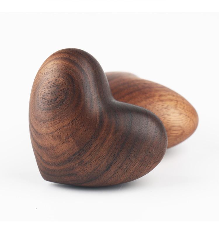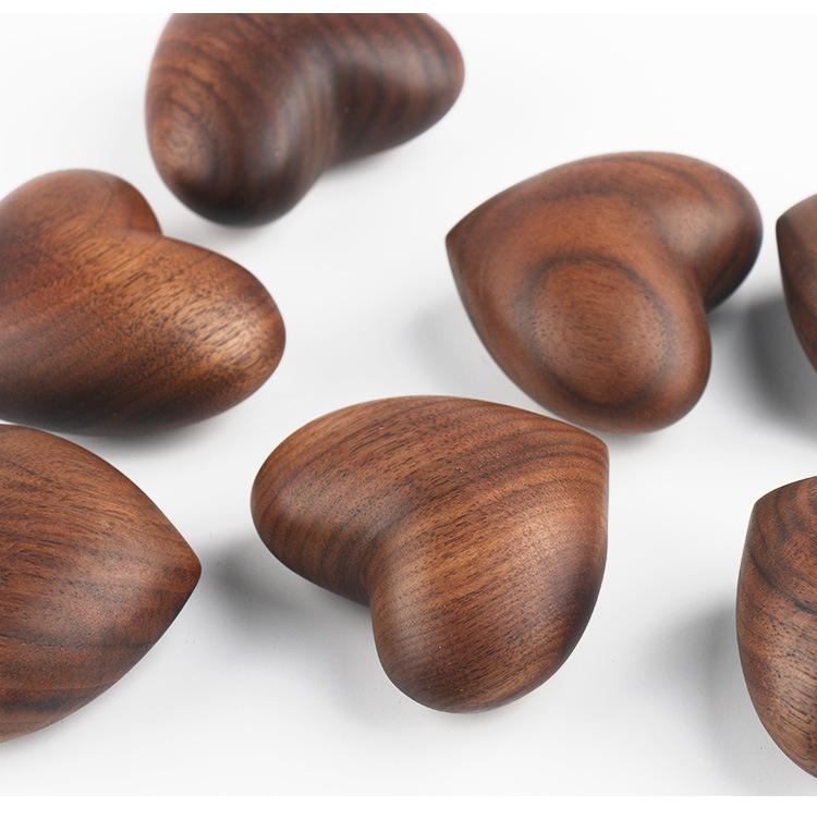Pieza para michelines más vendida del fabricante, Juguete de descompresión de nogal negro, Pieza de mango con forma de corazón de madera de la suerte, Adorno de juguete de escritorio