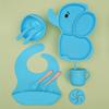Plato de Cena para Bebé Niños Aprenden a Comer Tazón de Arroz de Silicona con Ventosa Vajilla Anticaída Plato Dividido Cuchara Tenedor Bolsa para Arroz