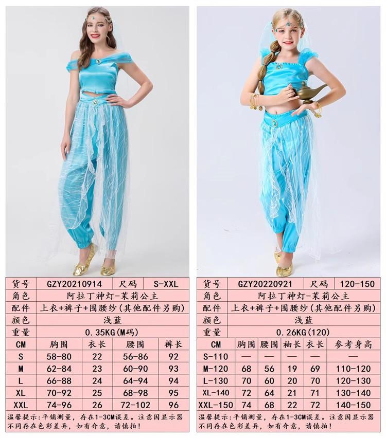 Princess Jasmine (light blue) children + head Chain + veil + bracelet