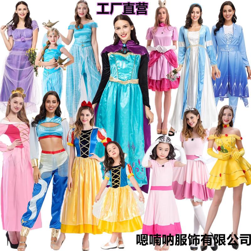 Halloween COS Super Mary Brigitte Blancanieves Arlo Vestido de Princesa Jazmín Padre-Hijo Durazno Disfraz de Actuación Venta al por Mayor