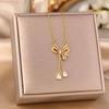 Collar de acero de titanio con borlas y lazo de estilo coreano para mujer, con microincrustaciones de circonita, elegante, ligero, de lujo, cadena de clavícula, collar resistente a la decoloración, joyería