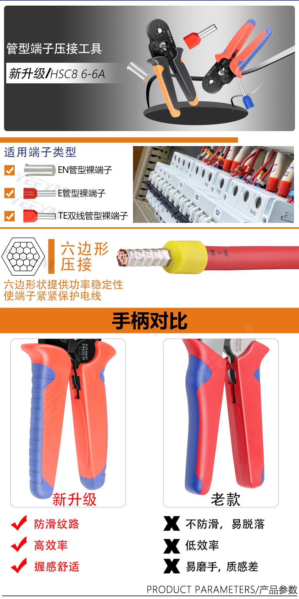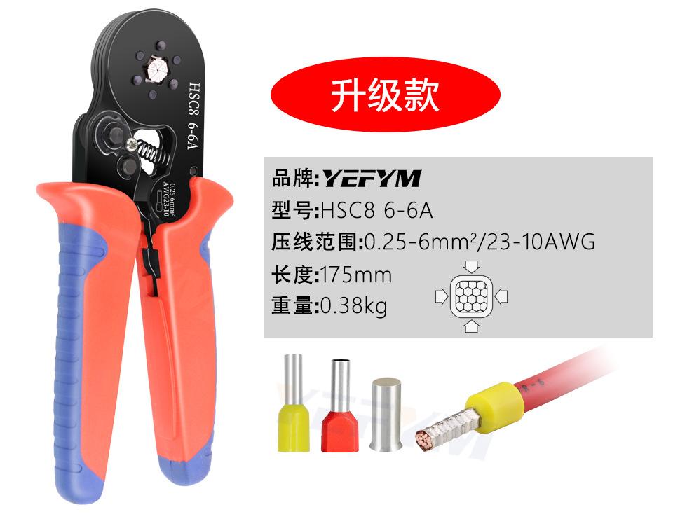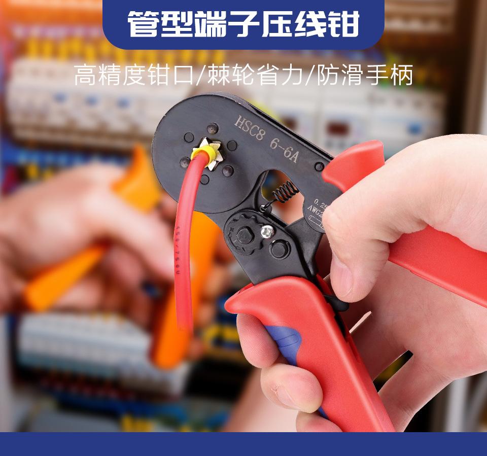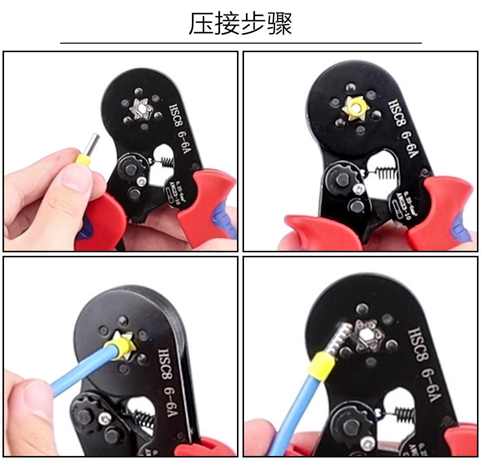 Alicates de crimpado para terminales de tubo/aguja HSC8-6-4, herramienta de crimpado manual más juego de 1200 para electricistas