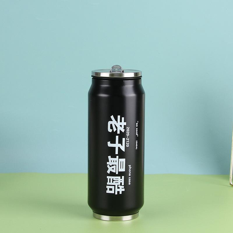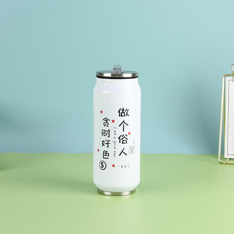 Suministro directo de fábrica, taza de vacío de lata de Coca-Cola de acero inoxidable 304, creativa, portátil, con pajita, taza de agua de doble capa al vacío.
