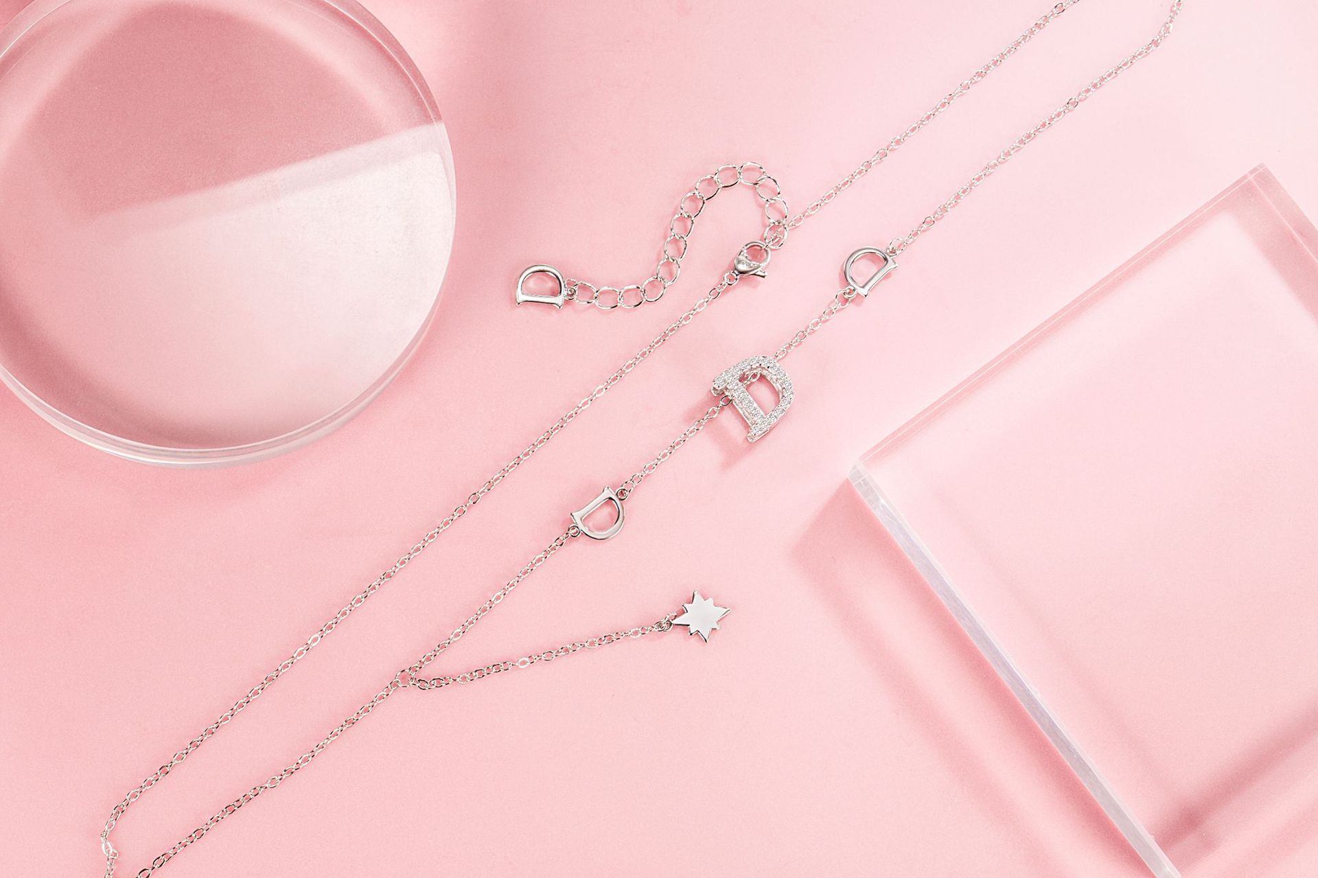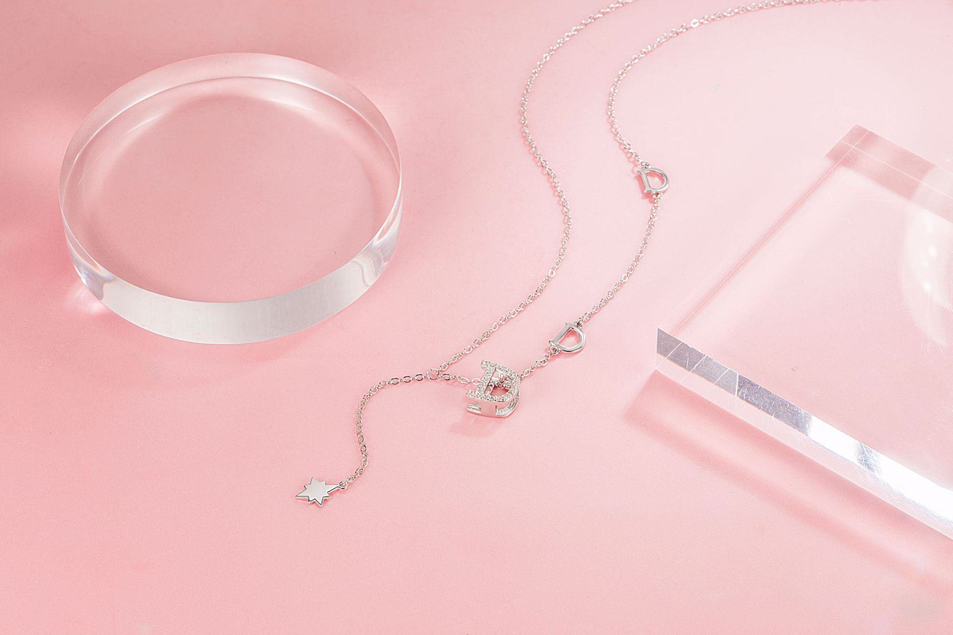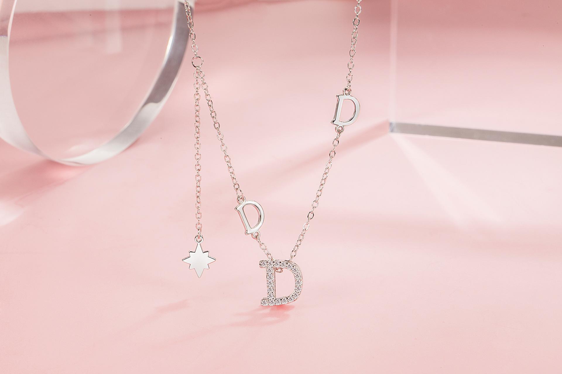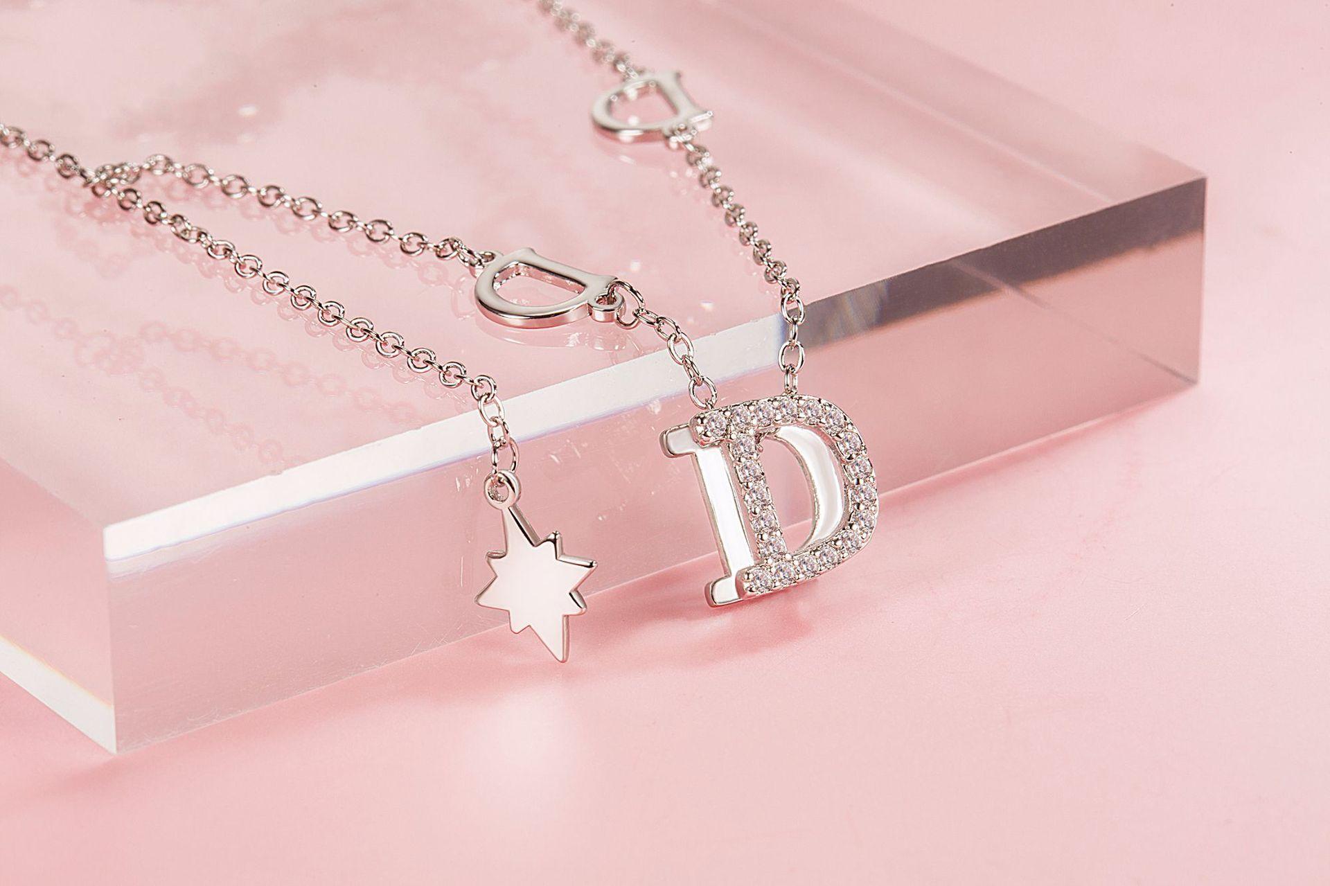 Collar con Letra D de Diamantes Completo Cadena Clavicular Estrella Su Mang Flujo Exquisito Colgante de Estrella Viento Frío Rojo de Internet Mismo Estilo