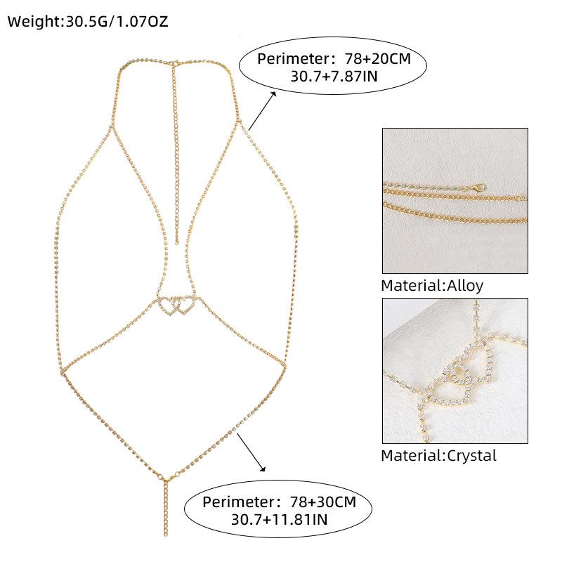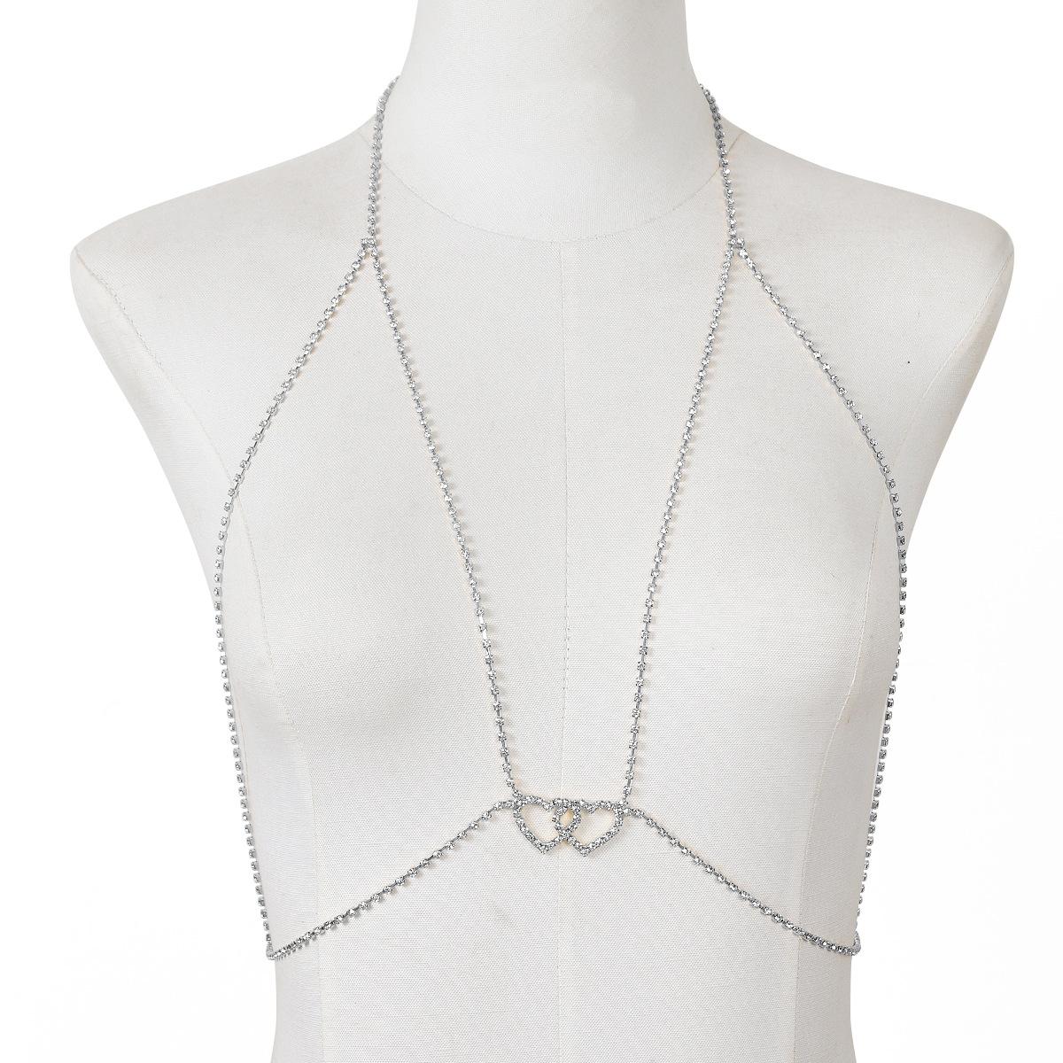 Cadena de pecho con diamantes de imitación de Amazon Explosions para fiestas en discotecas, sujetadores de bikini sexys, accesorios de cadena corporal con diamantes.