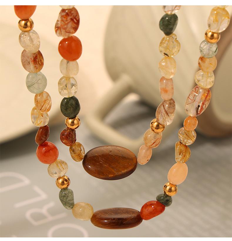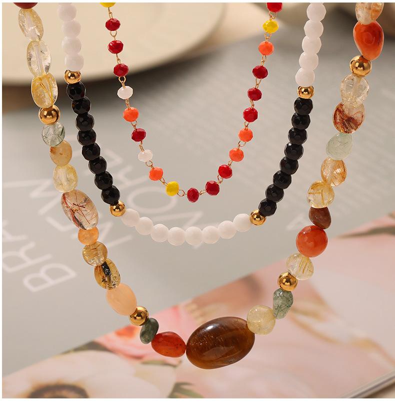 Colgante de ágata de piedra natural, estilo vintage francés, de lujo, irregular, hecho a mano, con cuentas de titanio y acero chapado en oro.