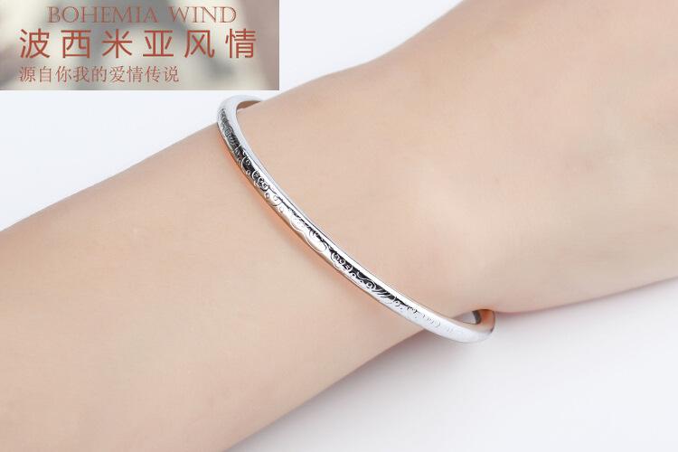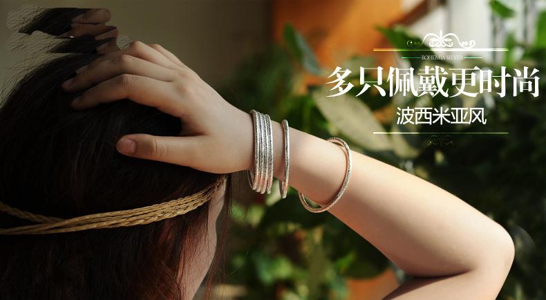 Pulsera bohemia redonda de venta caliente transfronteriza para mujer, estilo étnico retro, con patrón tallado, pulsera de tira fina con apertura