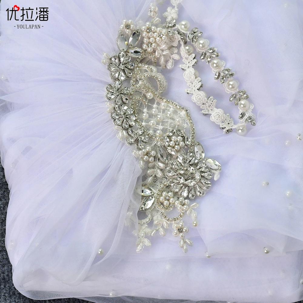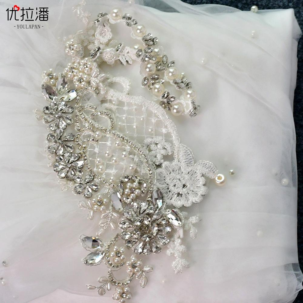 Aplicación de encaje de pedrería de perlas cosida a mano, malla suave americana de 3 metros de largo ensanchada