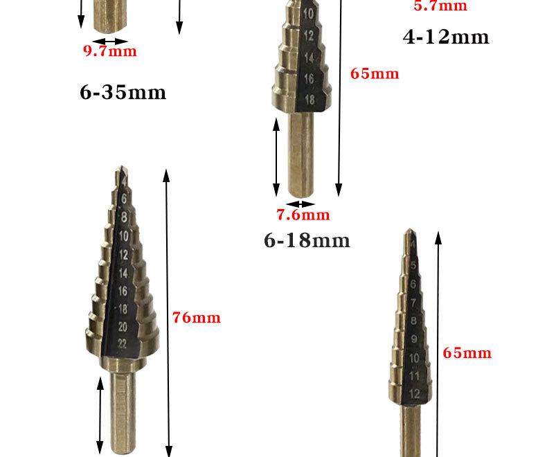 Taladro Pagoda Negro y Amarillo Taladro Eléctrico Manual Taladro Escalonado Taladro Juego de Herramientas para Apertura de Orificios Métricos Taladro Escalonado de Vástago Triangular