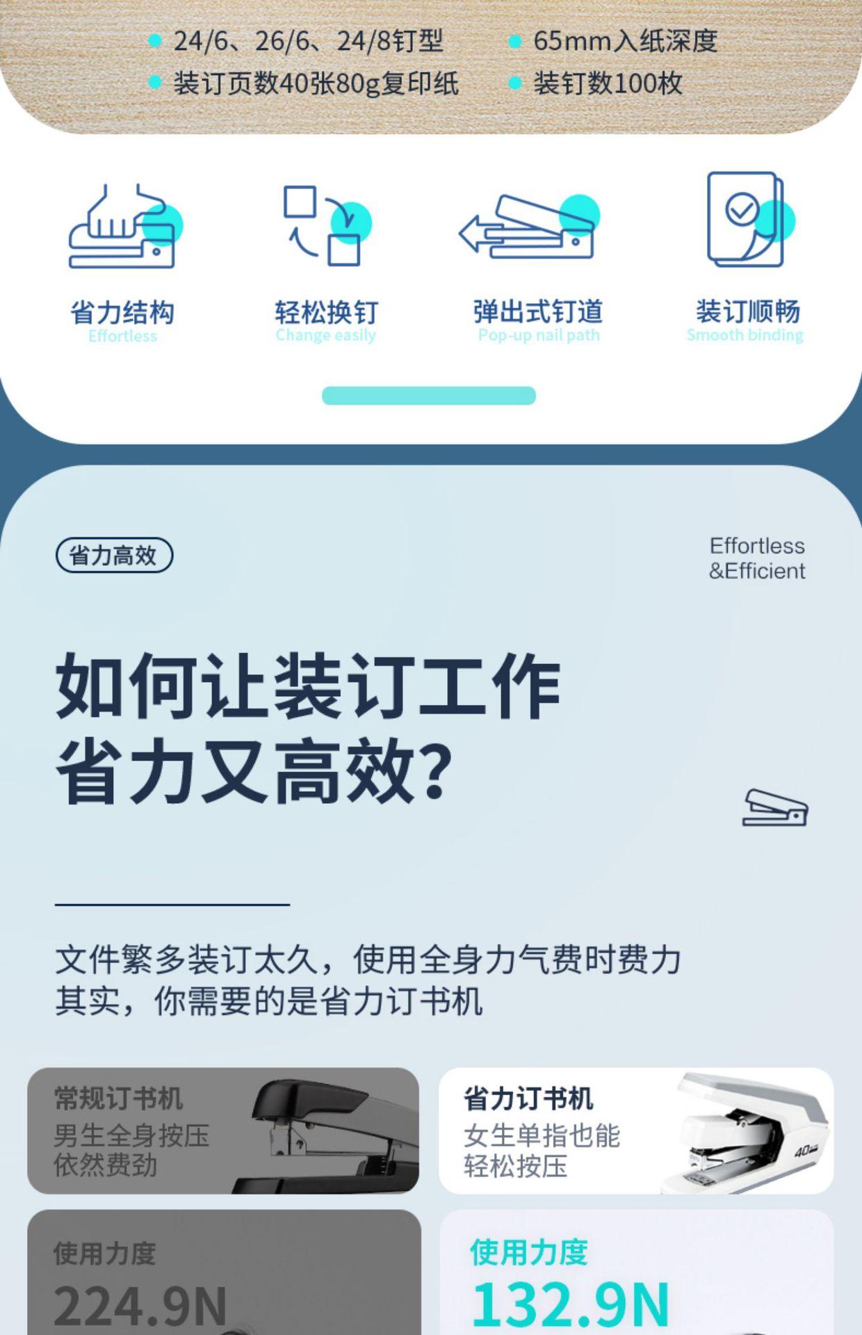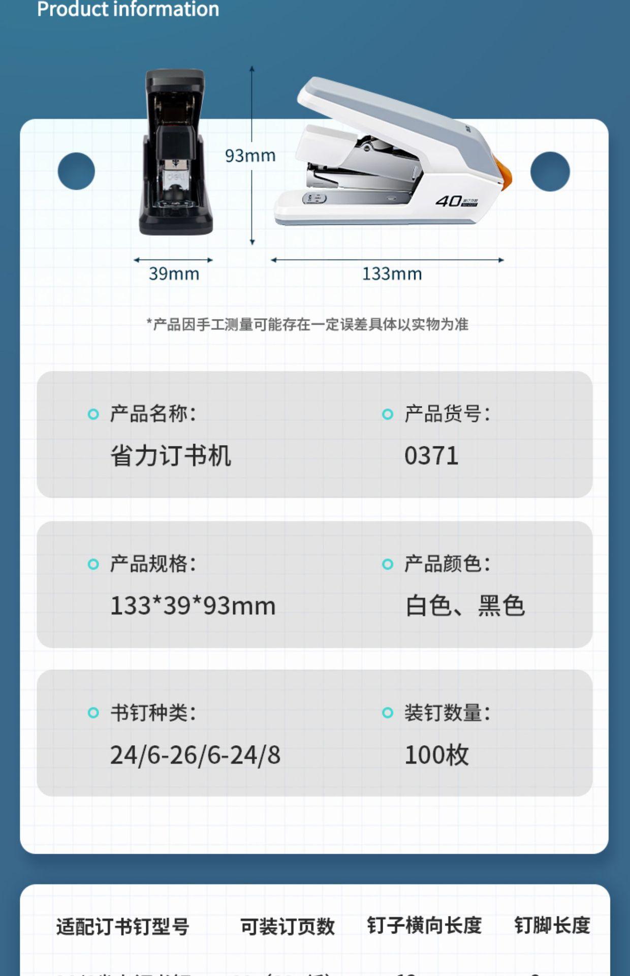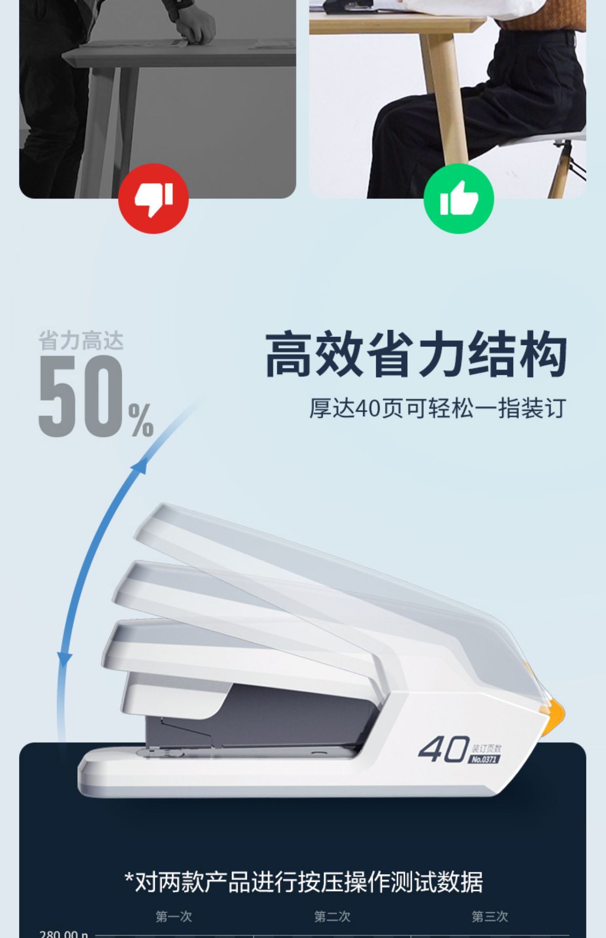 Grapadora Deli 0371, grapadora ahorradora de mano de obra para estudiantes, engrosada, 40 páginas, tamaño mediano, grapadora ahorradora de mano de obra