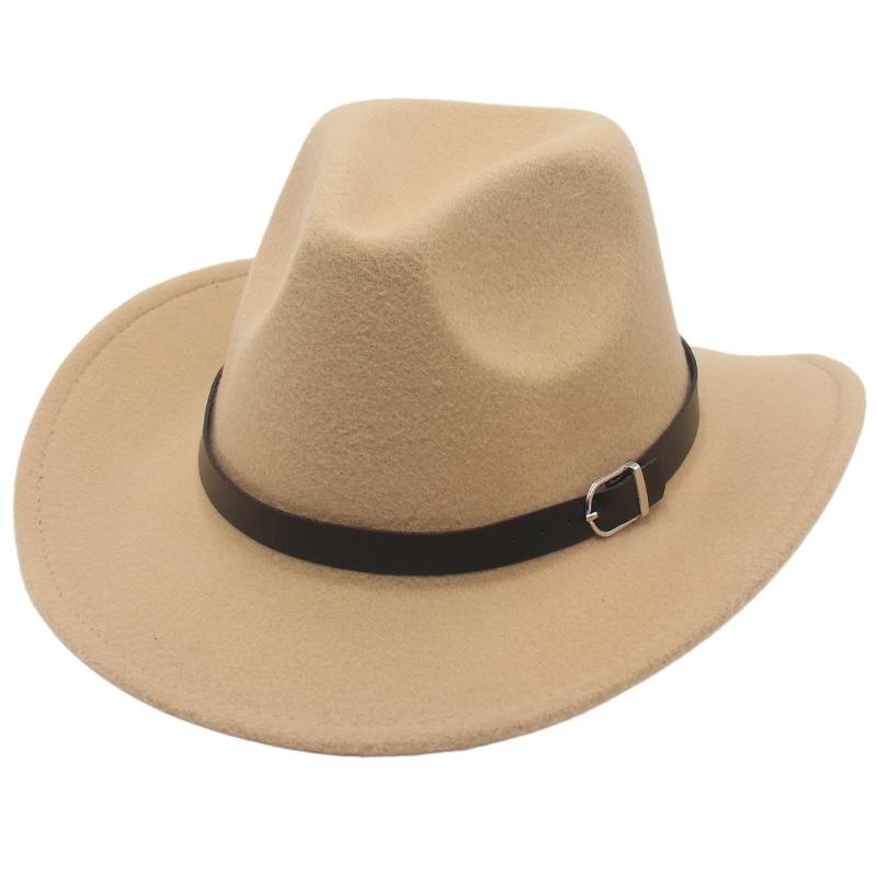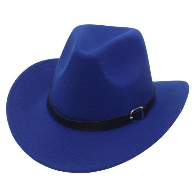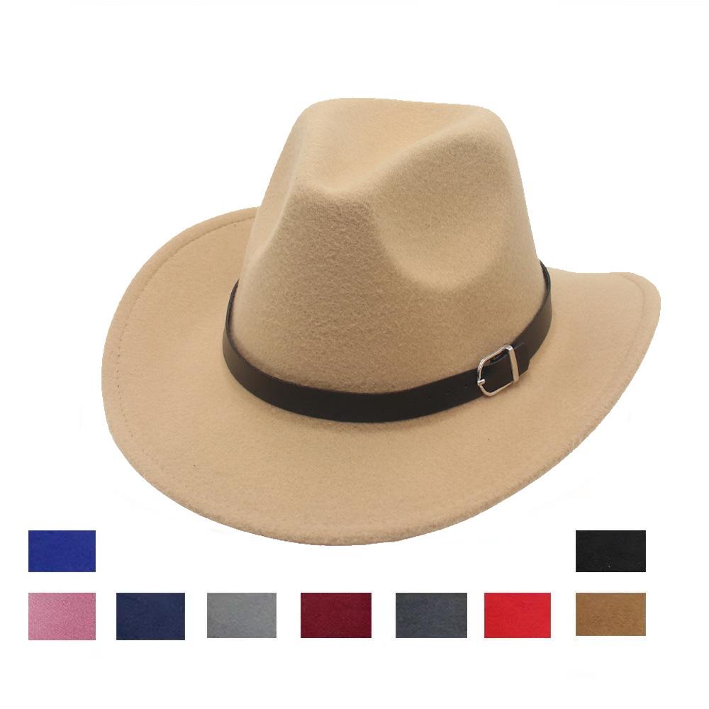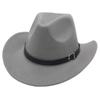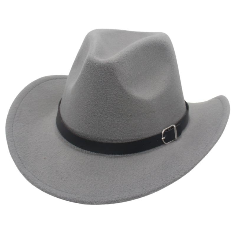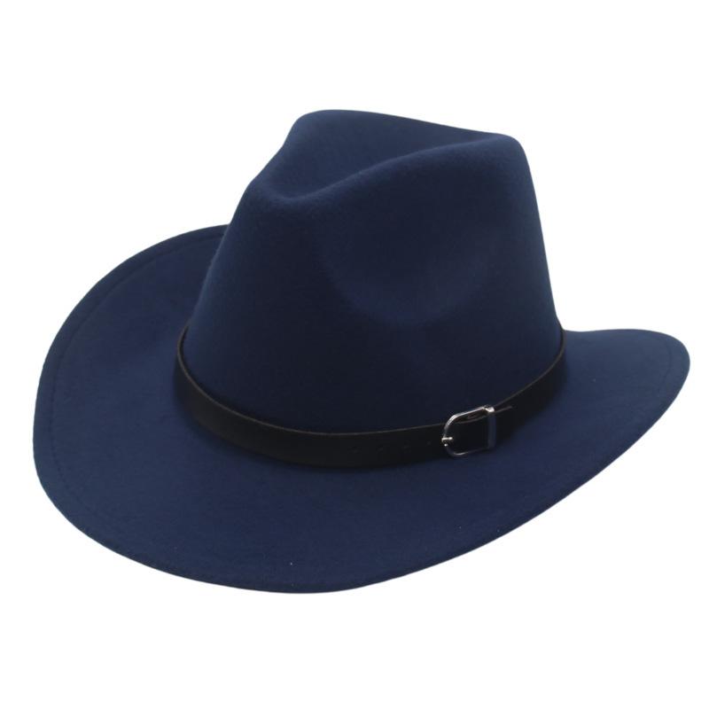 Sombrero de mezclilla occidental europeo y americano Sombrero de copa de fieltro versátil con borde rizado Sombrero Panamá clásico con cinturón Sombrero de caballero Comercio exterior