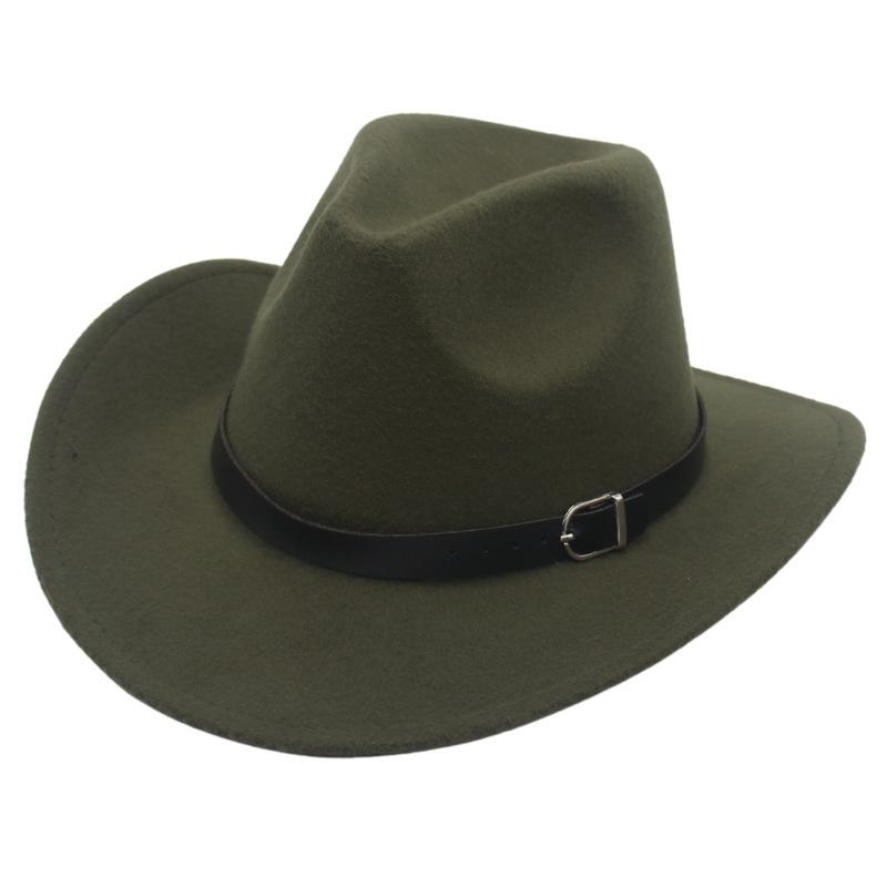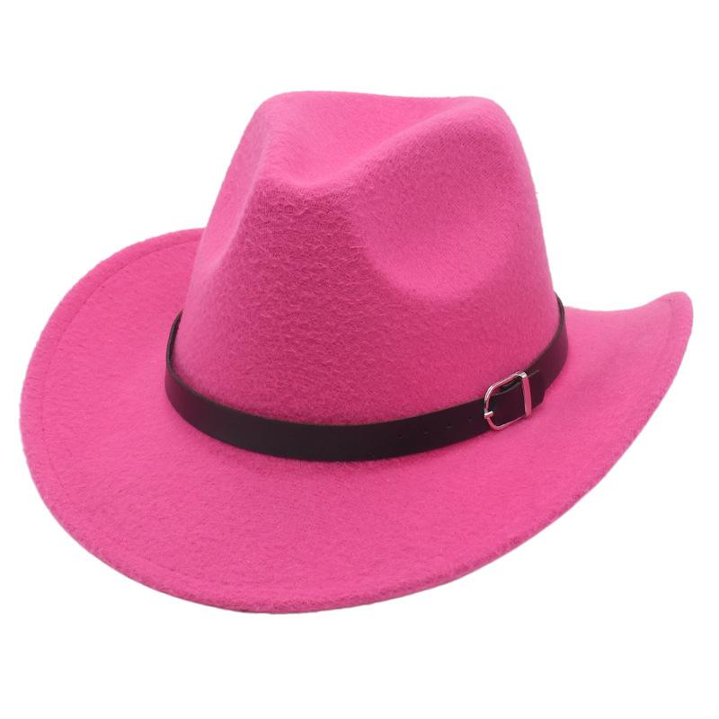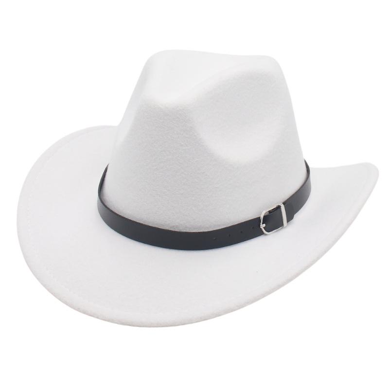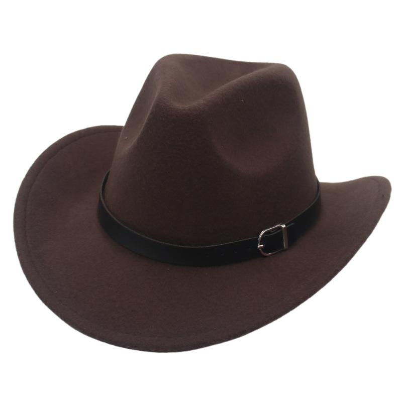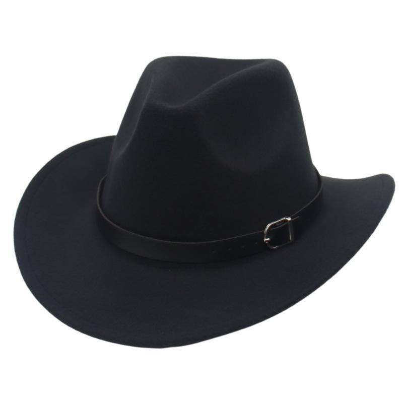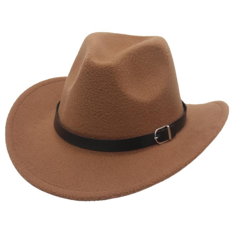Sombrero de mezclilla occidental europeo y americano Sombrero de copa de fieltro versátil con borde rizado Sombrero Panamá clásico con cinturón Sombrero de caballero Comercio exterior