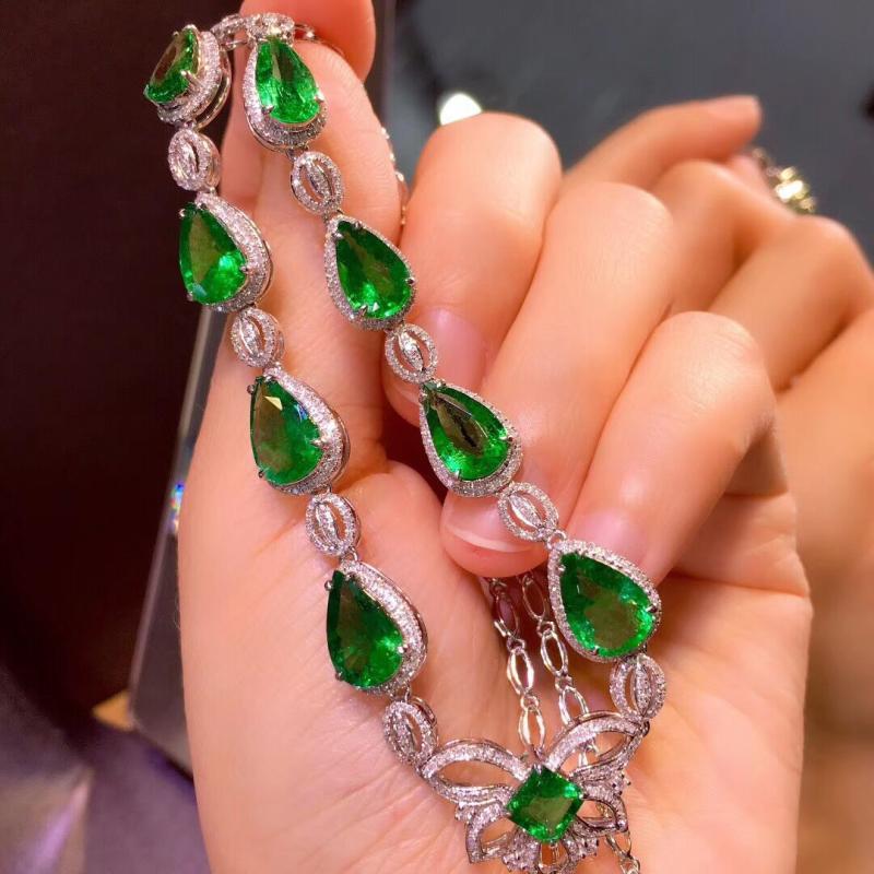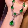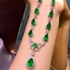 Collar de lujo con imitación de esmeralda natural en forma de pera y colgante de diamantes con microincrustaciones chapado en platino para mujer.