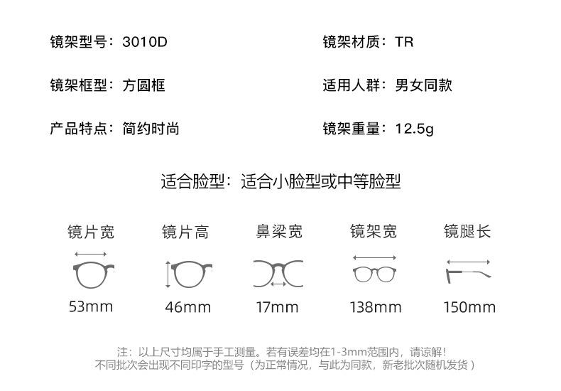 Armazón coreano liso de montura grande de alto sentido ultraligero TR para miopía armazón para mujer 3010D gafas Danyang al por mayor