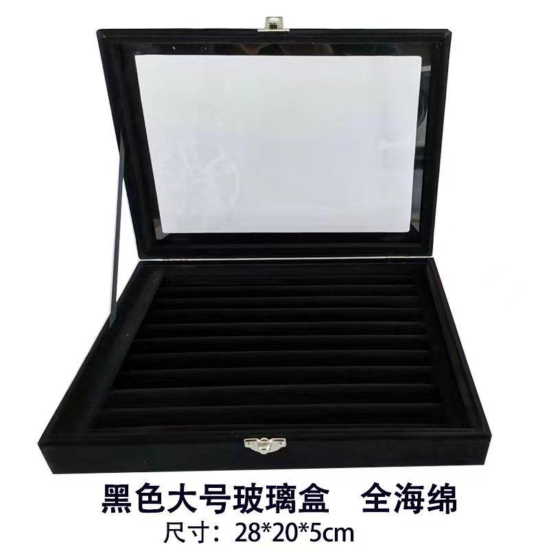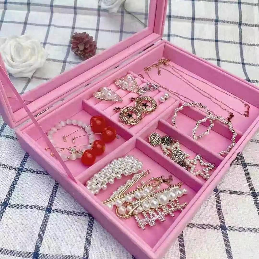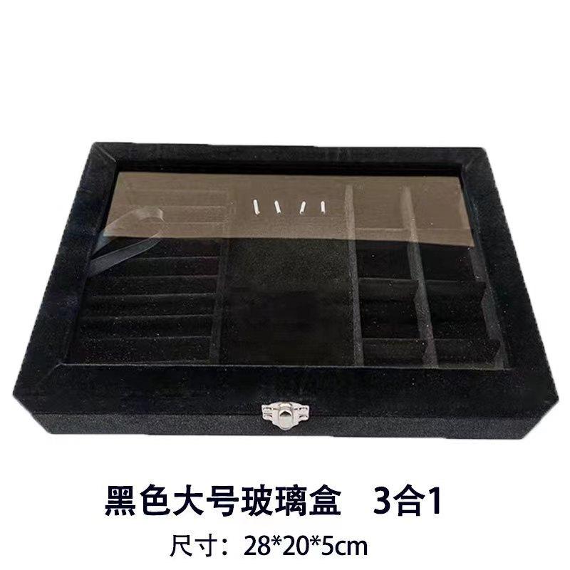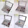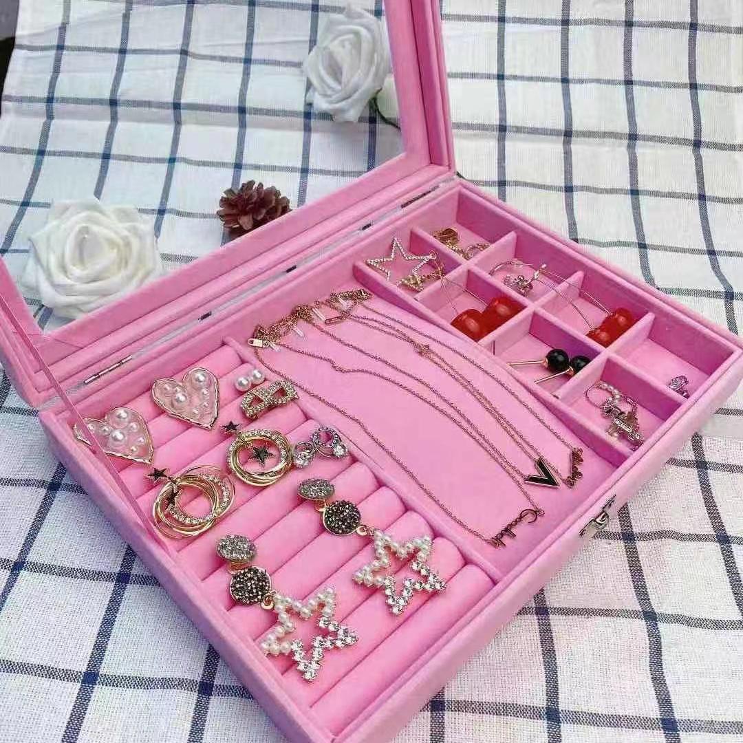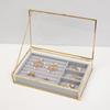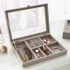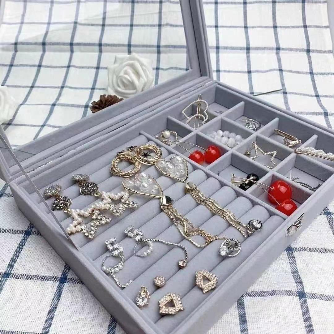Joyero transparente con tapa para guardar anillos, pendientes y collares, bandeja de madera de franela.