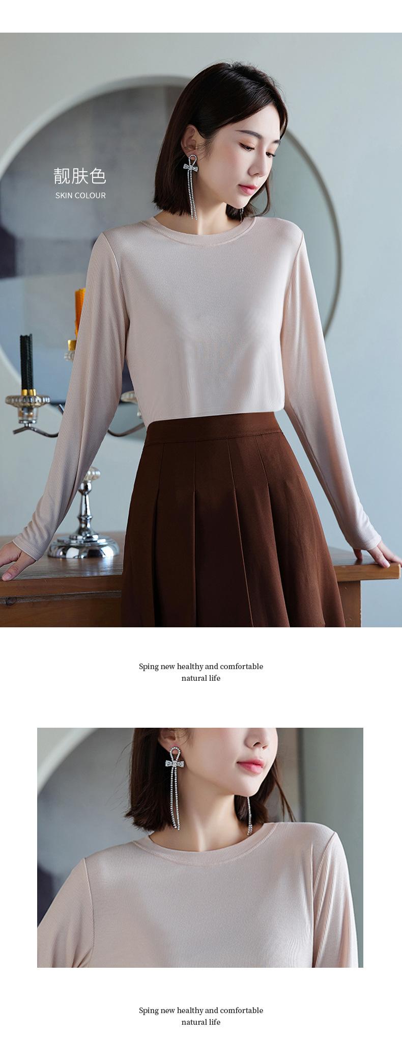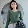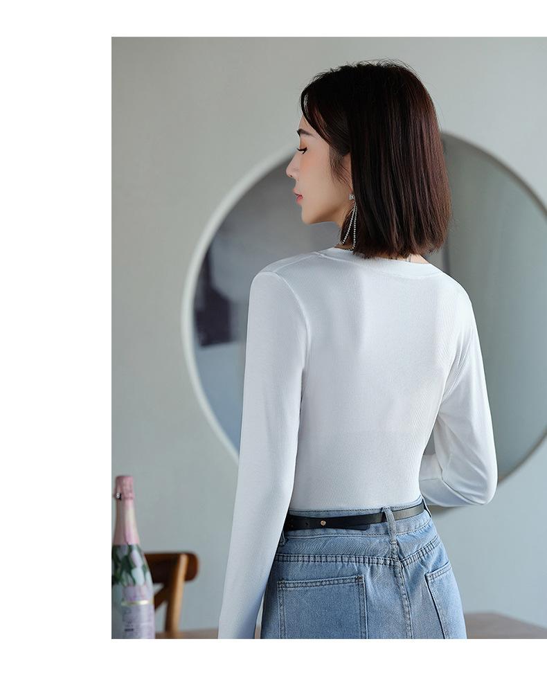 Camiseta básica de manga larga para mujer, otoño e invierno 2025, nueva camiseta negra de cuello redondo, holgada y adelgazante, estilo occidental.