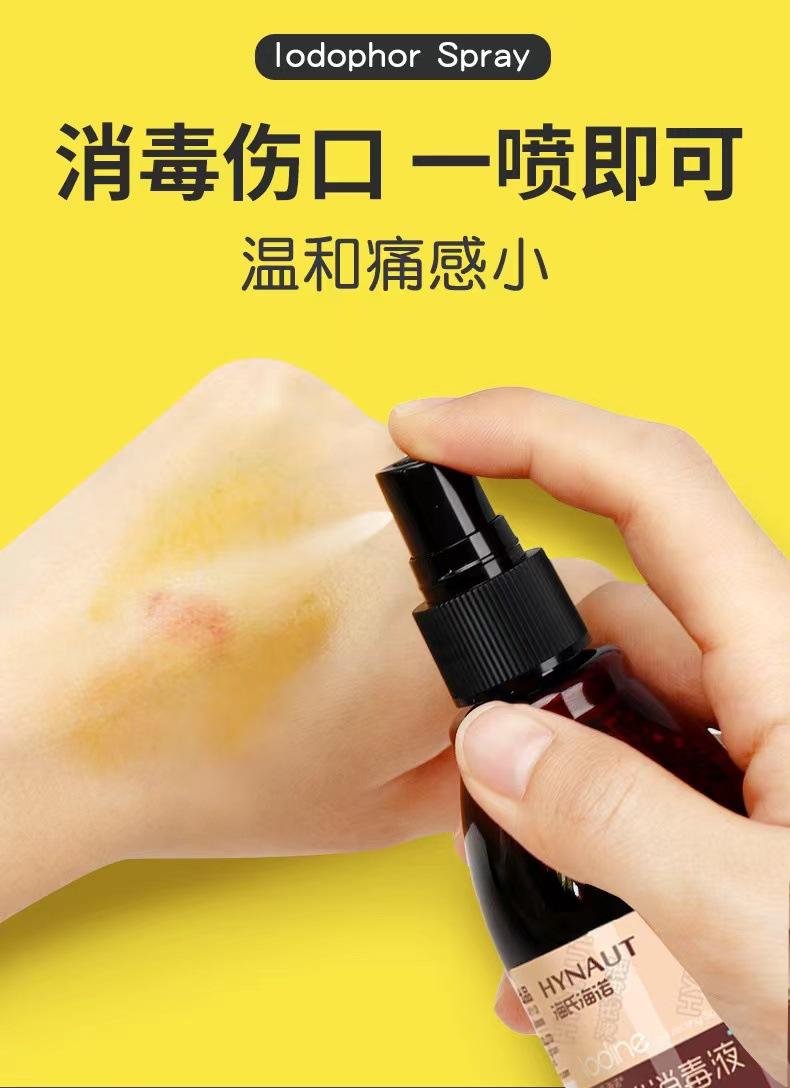 Botella pequeña de desinfectante de etanol yodado Innovi de Hainuo Innovi de 100 ml para la desinfección de heridas de la piel.