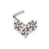 Piercing de nariz de acero inoxidable 316L en forma de L, tamaño 0.8*7, accesorios de cobre incrustados con circonita