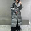 Chaqueta de plumón con capucha para mujer, de longitud media, nueva, 2023, de alta gama, talla grande, gruesa, mm90, plumón de pato blanco, abrigo de invierno estilo occidental