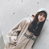 Sudadera con Capucha de Terciopelo para Mujer 2023 Otoño e Invierno Nueva Holgada con Estampado de Letras Chaqueta Tops para Estudiante Exportación para Mujer