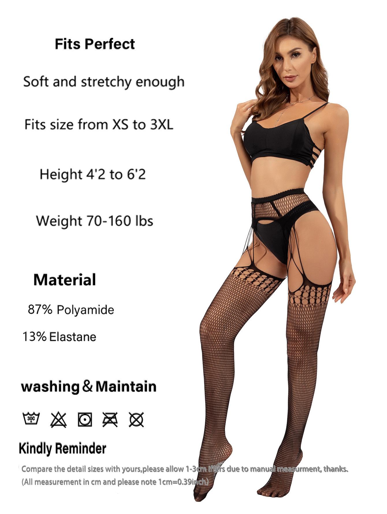Red de Pesca Europea y Americana de Otoño e Invierno Combinable Entrepierna Abierta Tentación Medias de Red de Pierna Ligera Medias de Seda Negra Sexy de Una Pieza Liguero Mujer
